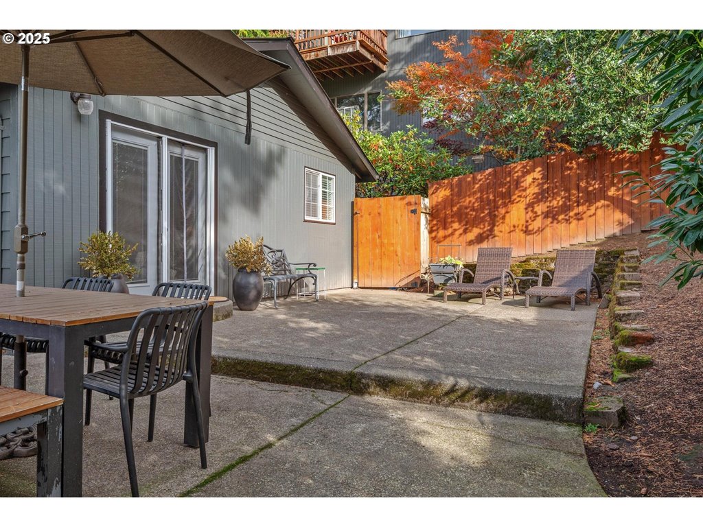 Move-in ready in West Portland Park! This charming 3-bedroom, 2-bath home checks all the boxes- new roof, fresh exterior paint, and a great outdoor space. The floor plan offers easy main-level living with a kitchen open to the dining area, a formal living room, cozy family room, and a spacious laundry area. The primary suite features a walk-in closet and direct access to the patio. The converted garage provides great storage for bikes and hobby gear. A truly sweet spot for comfortable, convenient living in a fantastic location! [Home Energy Score = 2. HES Report at rpt.greenbuildingregistry.com/hes/OR10192259]
