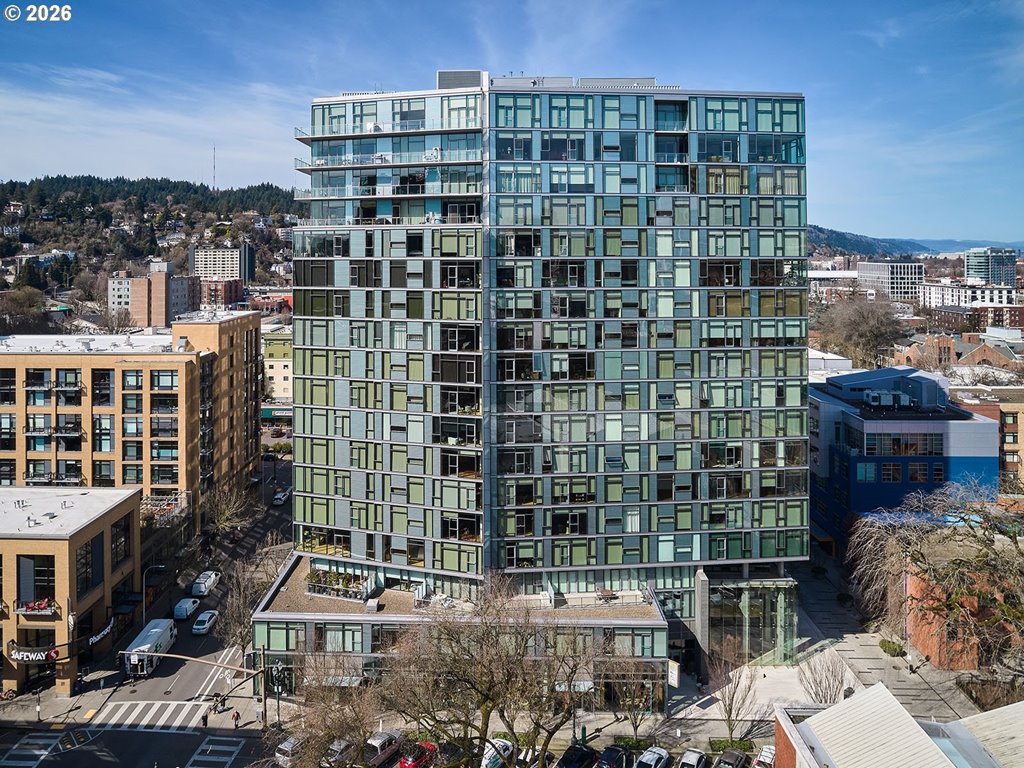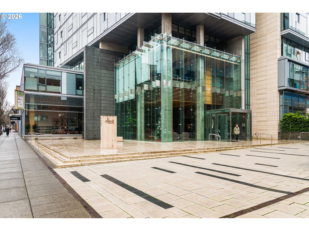 Light-filled and sophisticated, this two-bedroom urban residence in the Eliot Tower is ideally positioned in Portland’s Cultural District, overlooking the new Portland Art Museum expansion, the Mark Rothko Pavilion and Ubo Rondinone’s gilded bronze sculpture named “the sun”. Floor-to-ceiling windows frame inspiring city and skyline views, offering luminous daylight and captivating city lights after dusk. A Juliet balcony invites fresh air and an effortless connection to the outdoors.The open, flexible floor plan accommodates both a generous living room and a defined dining area, creating an inviting setting for everyday living and entertaining. The primary suite enjoys the dramatic city outlook through floor to ceiling glass and a rectangular picture window. A thoughtfully integrated home office sits in the corner of the primary bedroom. A spacious luxurious bath features luxurious finishes, built in storage and adjacent dual closets with custom organizers. The guest bedroom—tucked discreetly beyond the main living space—functions equally well as a den. Completing the home is a rare and highly sought-after utility room offering laundry facilities and substantial storage, ideal for larger items such as bicycles and shelving for home goods. The Eliot community amenities are numerous with concierge service, an outdoor deck with lounge furniture, a library with fireplace and seating, a conference room and a well equipped gym. The sale includes a deeded storage room located just steps from the deeded parking space.