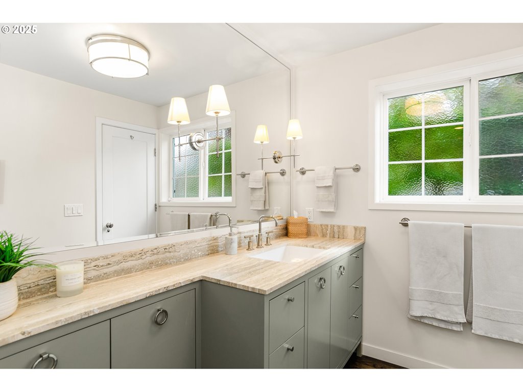 Open Saturday 10/11/2025 from 1pm to 3:30pm. A special charming and updated cottage style traditional with coastal flair nestled in Portland’s West Hills with lovely territorial and valley views. All on a neat corner lot.Great floor plan with open flow and lovely dark wood floors, designer touches and lovely built in features. Cook’s kitchen with granite counters,stainless appliances including a nifty built in Wolf gas range and oven. Family room off kitchen with vaulted ceiling and skylights. Spacious living and dining room with view to the southwest Handsome fireplace and detailing in living room. Two inviting bedroom suites with beautiful baths with high end finishes. Security System and A/C on the main floor. Lower level offers great potenial with separate entrance.Basement offers great storage and laundry area. Exterior has glorious refurbished deck space for entertaining overlooking wonderful yard and garden spaces including raised beds.Parking pad for two cars with generous patio space behind. Completely fenced yard. Located just minutes to downtown Portland, OHSU, schools and shopping and services.Close proximity to private schools OES,Jesut High and Catlin Gabel,Council Crest Park & SW Fairmount Blvd. loop nearby for walkers and runners. A quaint light and bright home with french doors, designer shades and top of the line finishes.This is a teasure that shines!!