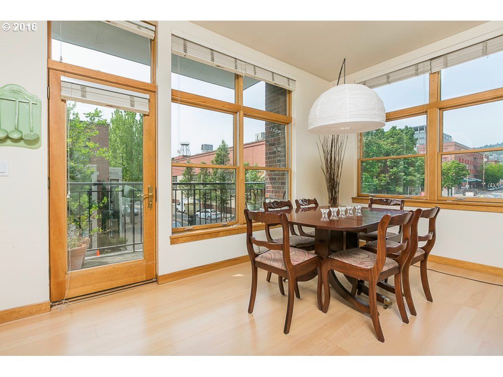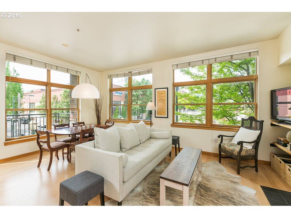 Impeccable Hard to find CORNER unit. Light & Bright. Newly rfnsh maple floors, wood blinds, newer carpet, Lrg kitchen island, Deeded parking & storage space. 5 X 10 deck, pantry, tile counters & backsplash, 2 lrg baths w/in closet. Next to Jamison Park, restaurants, shops, in the heart of the Pearl. Open great room feel. This is a 10! Hard to find in the Riverstone.