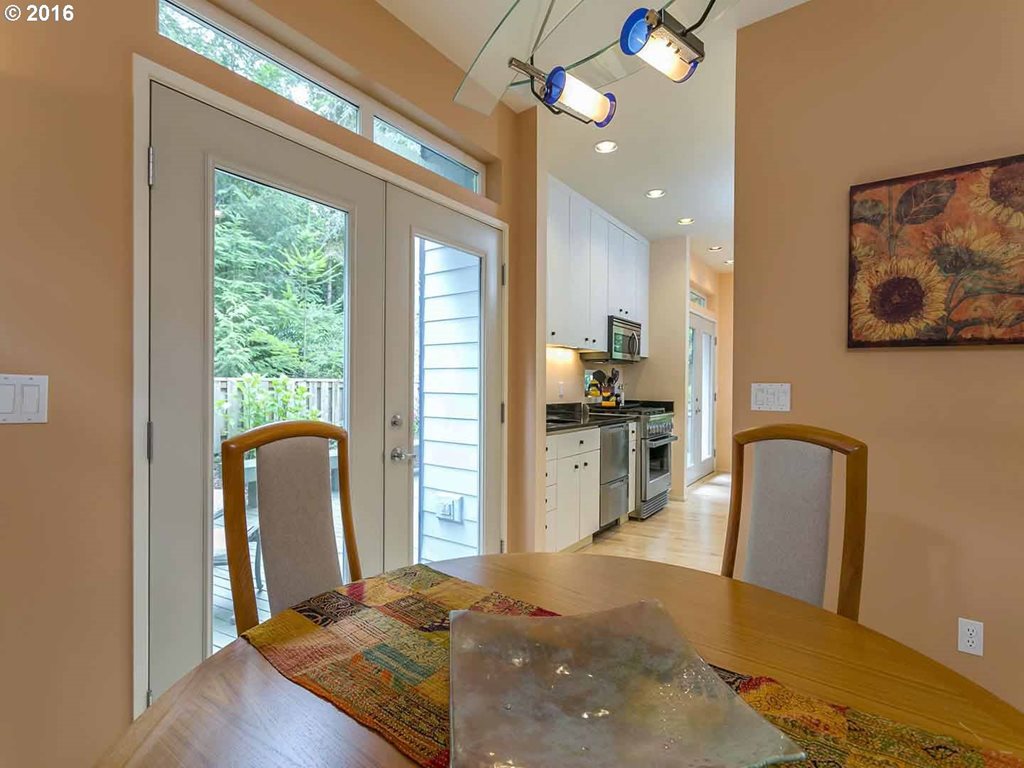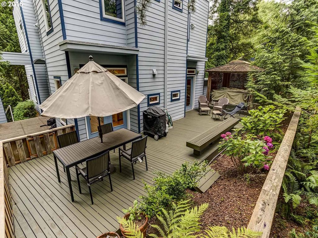 Unique contemporary on large private lot. Light and bright with high ceilings–lot of large windows–skylights. Large decks off Great Rm and off Kitchen/Din Rm. Huge Master Bdrm. Bdrm #2 can be easily converted back to provide 3rd bdrm. Peaceful/private views from every room. Beautiful landscape with water feature and trees. Close to Gabriel Park/Multnomah Village/THPRD Rec Center/Starbucks. Easy commute in all directions. A MUST SEE!