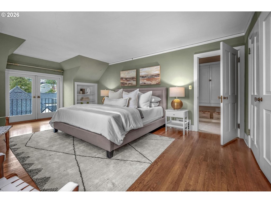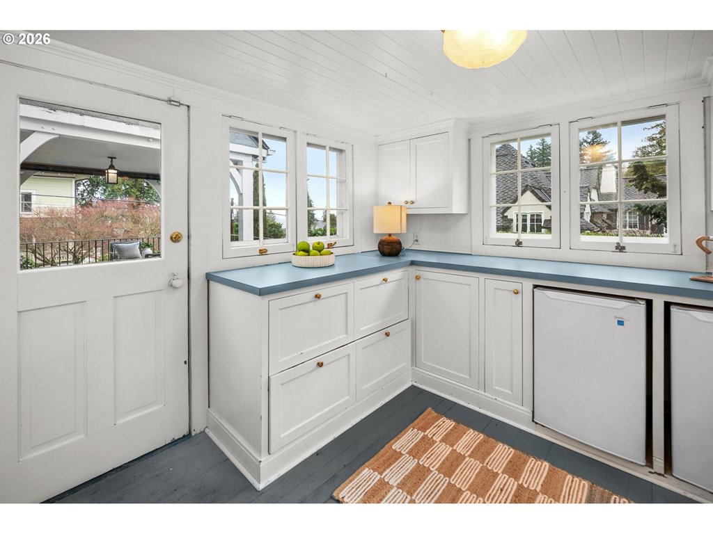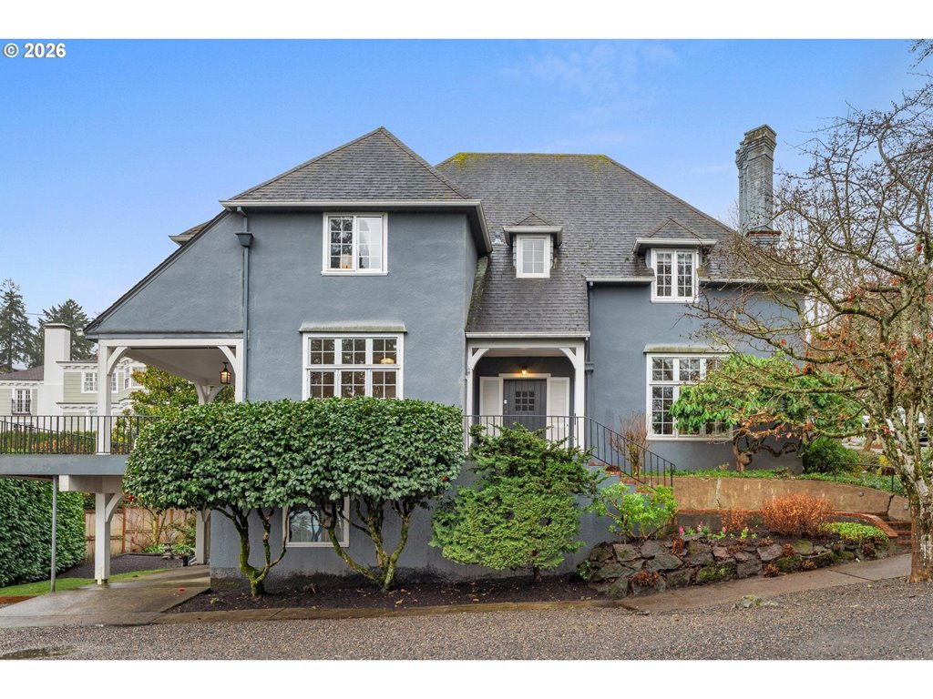 OPEN SAT 3/14 12-4 AND SUN 3/15 10-2. Designed in 1924 by noted architect Jamieson Parker for Misses Giles, this timeless Portland Heights English Cottage is ideally located within walking distance of Ainsworth Elementary School.A gracious staircase sets the tone upon entry, introducing the home’s classic architecture and enduring charm. The updated kitchen is thoughtfully appointed with two ovens, a gas range, wet bar with sink, granite island, and an exceptionally spacious butler’s pantry complete with beverage refrigerator and abundant cabinetry. The living room is both elegant and welcoming, featuring built-in bookshelves and a fireplace with a wood façade and gas starter. The formal dining room offers built-in corner cabinets and opens to a generous deck with sweeping views of downtown Portland — perfect for entertaining or quiet evenings at home. Upstairs, three bedrooms and a family room provide comfortable gathering spaces. The primary suite includes a sitting room with its own view of the city skyline.An expansive unfinished basement of over 1,500 square feet offers tremendous opportunity for future expansion, studio space, or recreation. Listing agent is related to seller. [Home Energy Score = 1. HES Report at rpt.greenbuildingregistry.com/hes/OR10245224]