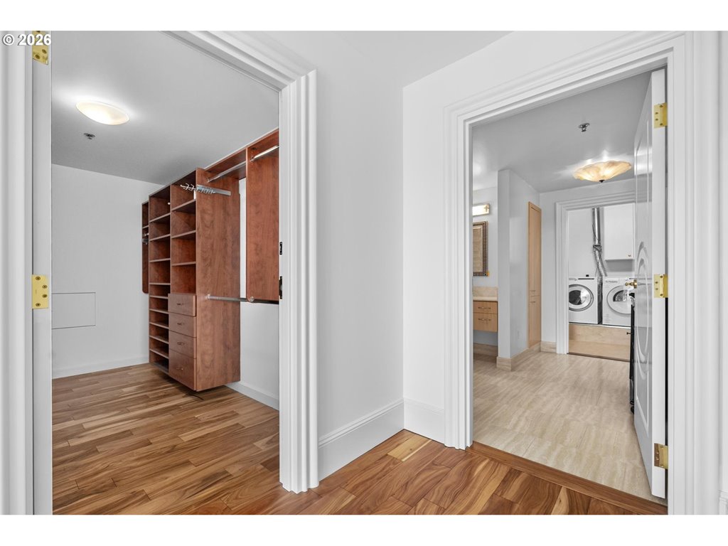 12th floor unit with 2,060 sq ft of thoughtfully designed living space with 2 bedrooms and 2.1 baths. This light-filled, meticulously maintained home features a spacious single-level layout with unbelievable sweeping views. Walls of windows greet you as you enter into the open concept living space. Beautiful chefs kitchen. The primary suite includes a generous walk-in closet, a large bathroom, and additional storage with an in-unit washer and dryer. A well-appointed second suite provides privacy and comfort for guests or flexible use as an office or den. Enjoy oversized balcony overlooking city. Two deeded parking spaces and a private storage unit add exceptional convenience. Enjoy premier building amenities including 24/7 concierge service, a fitness room, library, meeting room, and a common outdoor patio/party space. Just steps to the streetcar, this stunning loft seamlessly blends modern style, comfort, and an exceptional location.