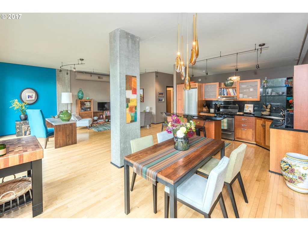 Beautifully Customized Loft with French Doors onto 28’x5′ DECK w/ Elec.& Water. South-facing w/City VIEWS from Wall of Windows. Kitchen w/Granite Counters & Stylized Island, Asko Dishwasher, Blomberg Refrig. Great Laundry Room w/Built-Ins. Custom Closets & Sliding Panels on Bedroom area for Privacy. Urban Living that offers Low Upkeep Lifestyle. Great Walkability & Biking Scores. Concierge & Community Room. Parking Space #314.