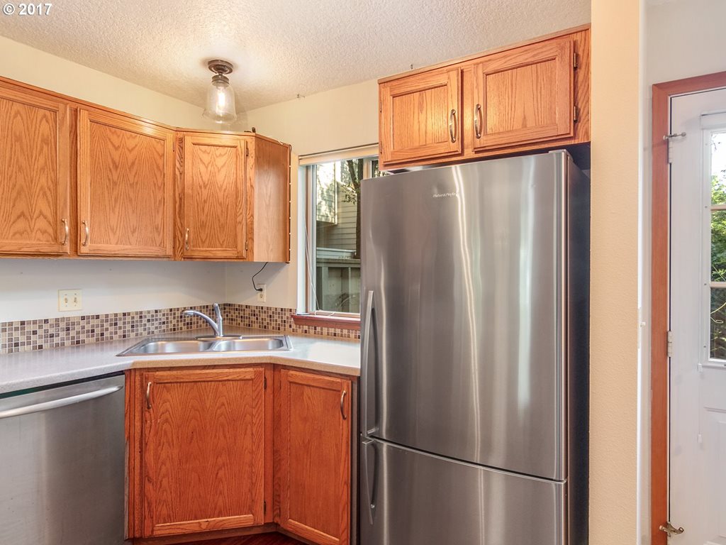 Beautiful end unit in a Quiet complex with no one above or below. 2 nice patios, one in front, back. Both patios are well-maintained, brick decks with greenery, and pink flower trees. 2 levels both with Brazilian cherry hardwood floors and large closets. Updated kitchen all appliances are stainless steel. Laundry upstairs, wood burning f/p, 2 big bedrooms, updated bathroom w/jetted tub. Carport and storage.