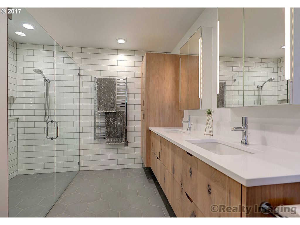 Light filled great room boasts a wall of windows with a territorial view of City and Cascades, vaulted ceilings, contemporary fireplace and gourmet kitchen with slab quartz counters. Spacious deck off great room is ideal for indoor/outdoor living. Sleek, newly remodeled Master Suite. Private hide-a-way snuggled in the West Hills, just 5 minutes to NW 23rd, Rose Garden, Zoo, & Arboretum. Oversized garage is 750 sq. ft. Easy care yard.