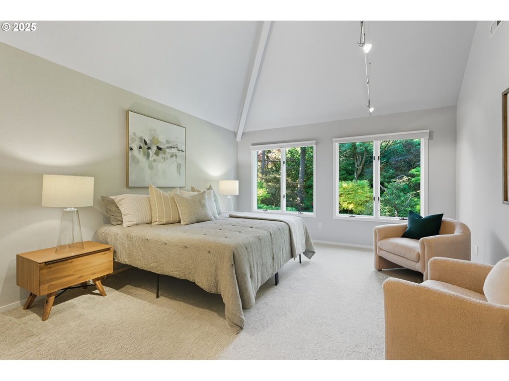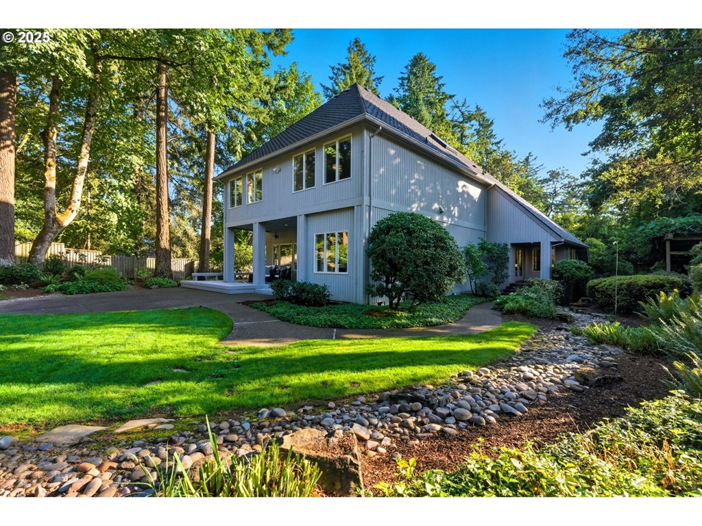 WOW factor here! An elegantly grand contemporary home is nestled in almost ¾ of an acre just waiting for you. Hidden in a private drive, you will be pleasantly impressed by the modern design and the surrounding robust nature. Vaulted ceilings and skylights throughout to bring out the airiness and natural sunshine. The beauty of the greenery reflects from every window. The gourmet kitchen and comfortable family room leading to the spacious outdoor space is perfect for family and friends to gather. Play catch, relax, and enjoy the serene setting where you can listen to the bird’s chirp. Live in this hidden gem! [Home Energy Score = 2. HES Report at rpt.greenbuildingregistry.com/hes/OR10025434]