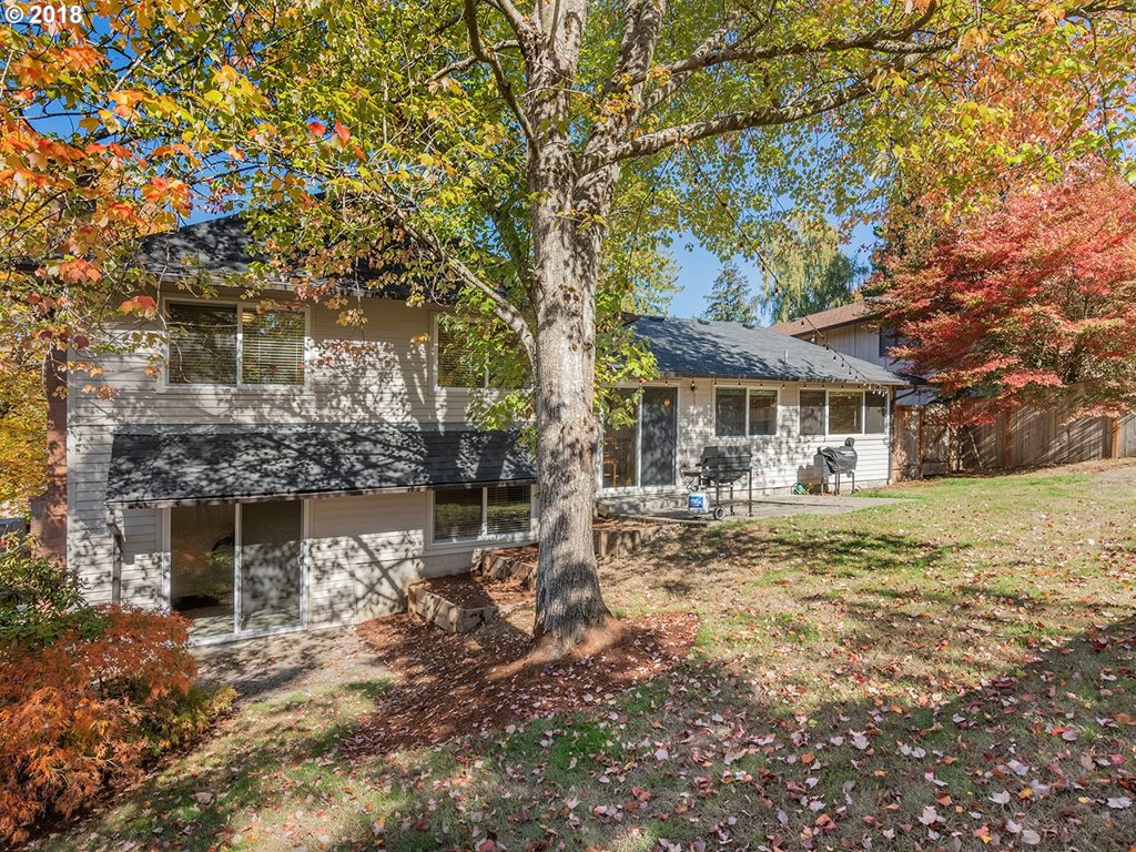 Spacious layout in this bright and light Tri-Level home. It’s sits on a large, fenced lot in Garden Home on a quiet, dead end street. Hardwood floors in the living room, dining room and kitchen. Formal entry & livingroom with FRPL. Lower level has a walk out family room with a FRPL, half bath and laundry. Four true bedrooms, including master suite, on the upper level. New roof, fresh interior paint, kitchen eating area with walkout…
