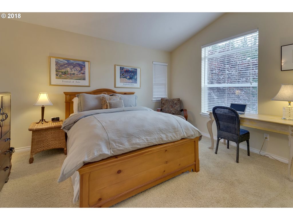 Cooks kitchen with granite, SS appliances, dining area. Comfy living room with high ceiling, gas fireplace, and natural light. Relax in one of 2 Master suites with W/I closets, vaulted ceiling, laundry room. Lower 3rd bedroom/office. 3.1 baths. Enjoy the quiet lifestyle on two decks, surrounded by mature greenspace. Close to shopping, dining, transit. Pearl District design + Portland address + Wash Co taxes.