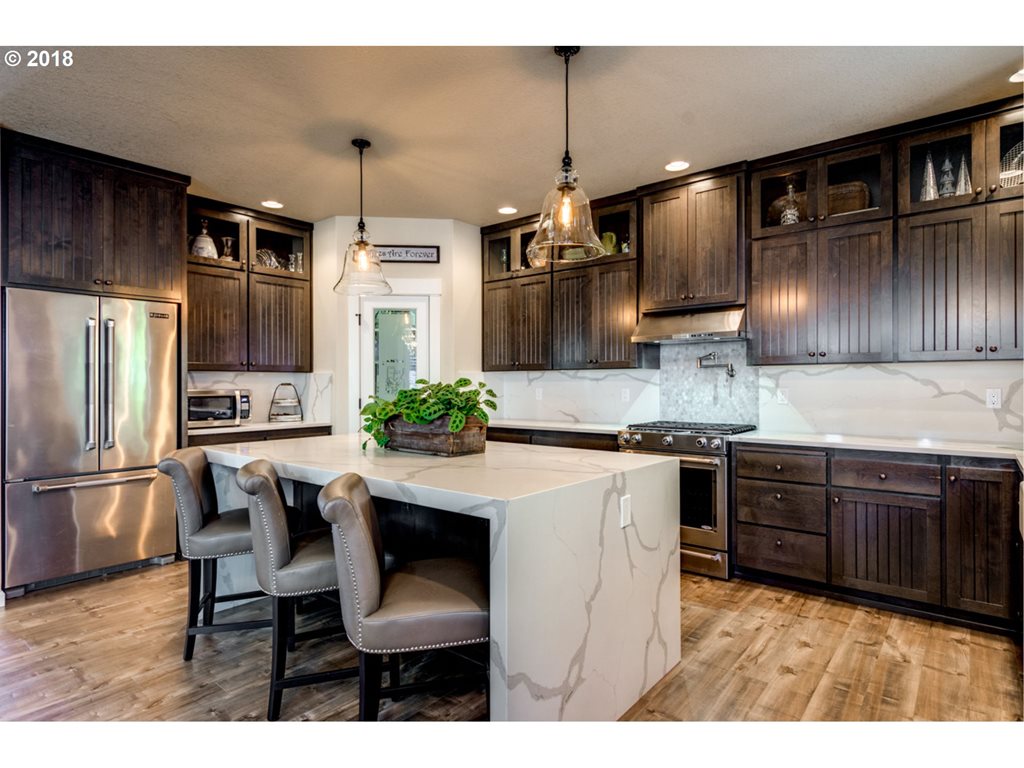 Stunning! Everything new & upgrades galore! Ideal floor plan, quartz counters, large island w/eating bar. Main level bed & full bath. Hardwoods on main, tile flooring in all bathrooms. Plantation shutters throughout. Finished oversized 3 car garage w/workspace & built-ins. Relax or entertain in your brand new easy to maintain saltwater pool w/waterfall & built-in hot-tub! Covered teak deck. Premium lot w/treed area behind home.