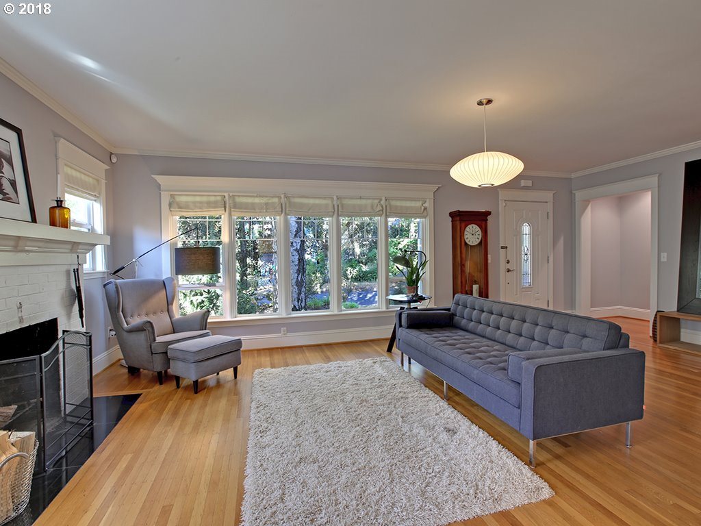 Updated English Cottage perched high on large corner lot. Light & bright living room w/wall of windows, wood burning fireplace & open layout flowing into dining room & kitchen. Updated kitchen offers new granite counters & backsplash, ss appliances, eat bar & plenty of storage. 2,815 sqft layout includ 4 beds (2 on main), 2 baths & finished basement w/spaces for separate family room & addt’l bonus room. Coveted Irvington neighborhood! [Home Energy Score = 5. HES Report at rpt.greenbuildingregistry.com/hes/OR10082681-20180831]