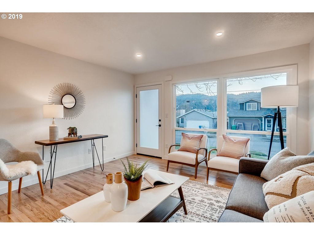 This amazing 3 bed, 1960 Modern Bungalow has been totally updated inside & out & features views of the Columbia, NW industrial area & Forest Park from the large picture windows in the light & bright great room & the back yard! A Spectacular location just blocks to Downtown St. Johns, too. All new electrical, plumbing, HVAC, windows, an uber-functional bath/laundry room, hardwood floors throughout, open kitchen & gas cooking. HES is a 7! [Home Energy Score = 7. HES Report at rpt.greenbuildingregistry.com/hes/OR10063690]