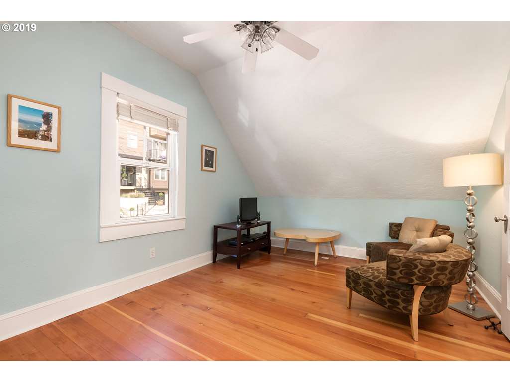 Impeccably cared for condo alternative w/ low maintenance yard views from the back ipe deck and high end bathroom remodels make this a perfect close-in city home with secured parking. New roof, A/C, gas furnace, wood floors, skylights, and recent seismic upgrade. Potential ADU conversion w/outside entrance on the lower level. Minutes to downtown,John’s Landing, LO, Willamette River- great schools, convenient location, extensive upgrades