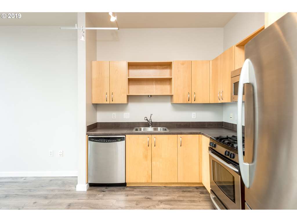 Great City & Tanner Springs Park VIEWS. Spacious Open Floor Plan. STUDIO with Walls of Windows & Covered DECK. Freshly Painted. Upgraded Hardwood Floors. Stainless Steel Kitchen Appliances with Gas Range. Large Walk-In Shower with Bench. Washer & Dryer. Parking Space #13 & Storage Unit #169. Community Rooftop Deck on 7th Floor. Close to Parks, Streetcar, Cafes, River Walkway & so much more. Walk Score 97. Bike Score 95. Transit Score 91