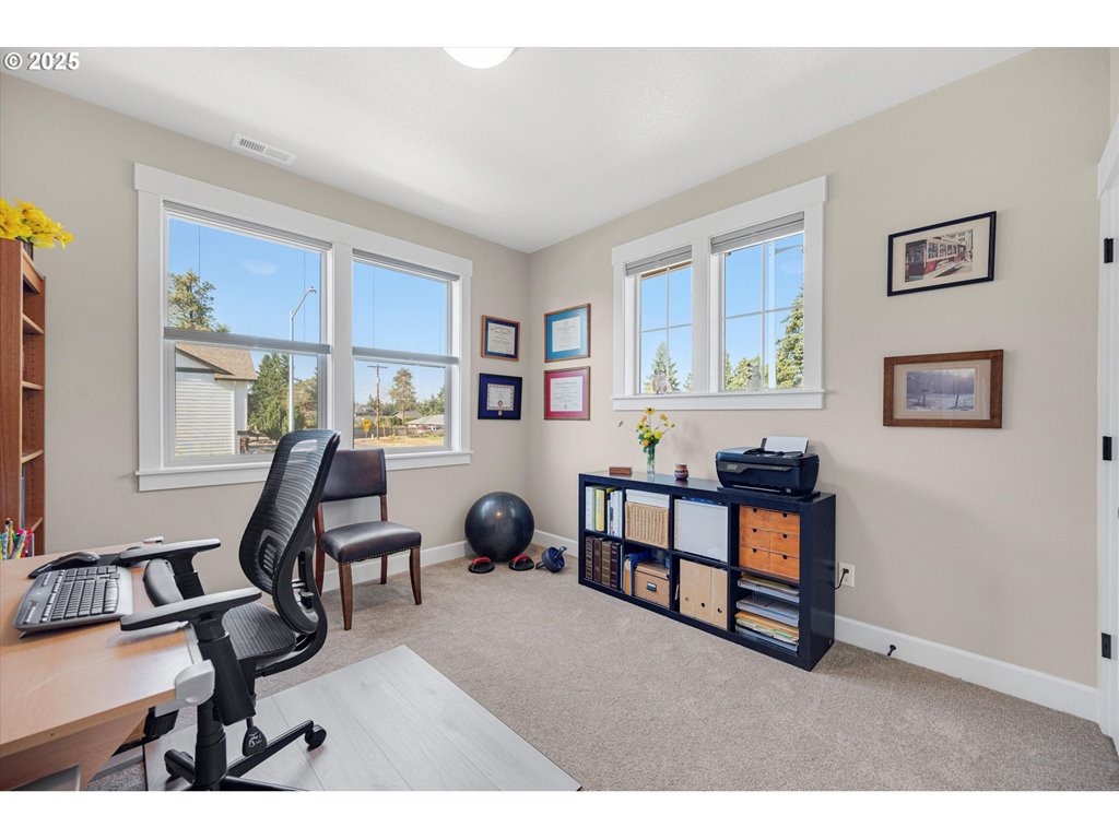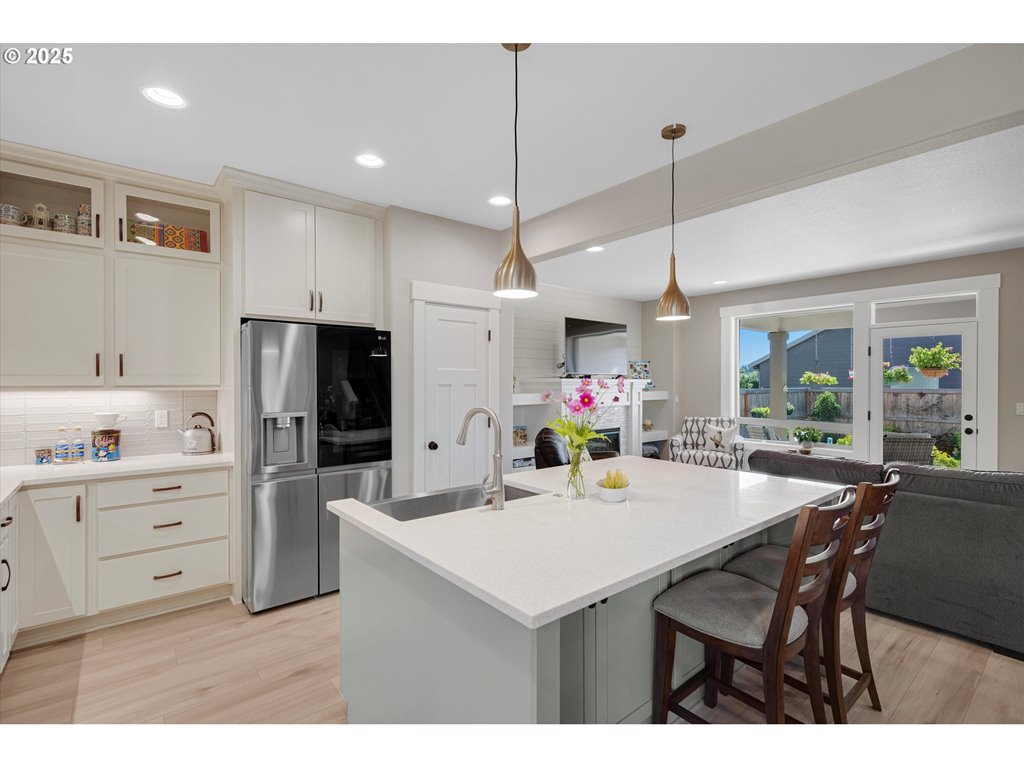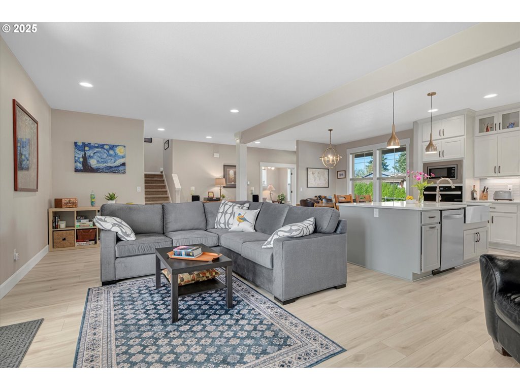 Like-new construction, only two years old, on a corner lot in desirable Dotson Farms. This thoughtfully designed 5-bedroom, 3.1-bath home features high ceilings and a spacious great room with gas fireplace, built-ins, and shiplap accents. The kitchen offers a large quartz island, stainless appliances, gas cooking, pantry, and eating bar – perfect for everyday living or entertaining. A main-level bedroom with French doors and full bath provides flexibility for guests, office, or den. The upstairs primary suite includes coved ceilings, a tile shower, soaking tub, double sinks, and a large walk-in closet, with laundry and storage conveniently located nearby. Enjoy a large, fully fenced backyard with covered patio and front/back landscaping complete with sprinklers. With central AC, stylish finishes, and no HOA, this home is truly move-in ready. Dotson Farms is an excellent Oregon City neighborhood known for its well-crafted homes, modern conveniences, and welcoming community – offering the perfect balance of comfort and location.