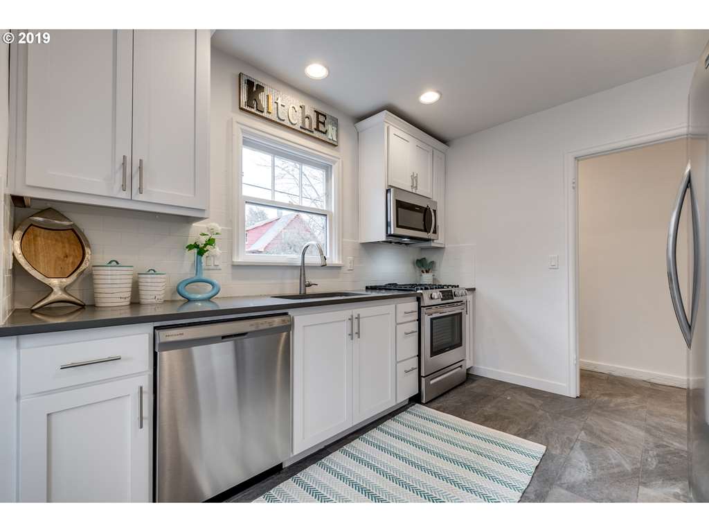 Beautifully remodeled St Johns mid-century combines traditional charm Coved ceilings,arched doorways,built-ins w/modern conveniences. Recent updates: Refinished HW flrs,fresh paint,main bathroom,kitchen complete w/SS appliances & quartz counters. Upper lvl office/den & new master suite w/double sink vanity, tiled shower & w/in closet. Family room w/FP & laundry rm w/storage in basement. Walk/bike to parks,cafes,pubs,theater & shops. [Home Energy Score = 1. HES Report at rpt.greenbuildingregistry.com/hes/OR10070616]