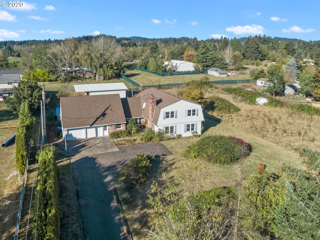 Bright and Charming home sits on 1.78 sunny and flat acres. Minor fixer with spacious rooms, vaulted ceilings, 4 bedrooms on the second floor. 2nd floor has 3 showers and 2 toilets. Quiet flat dead end street with newer stable barn and hot tub stay. Peekaboo views of Mt. Hood from kitchen. Possible future development on lot. Great opportunity to create your own farm paradise.