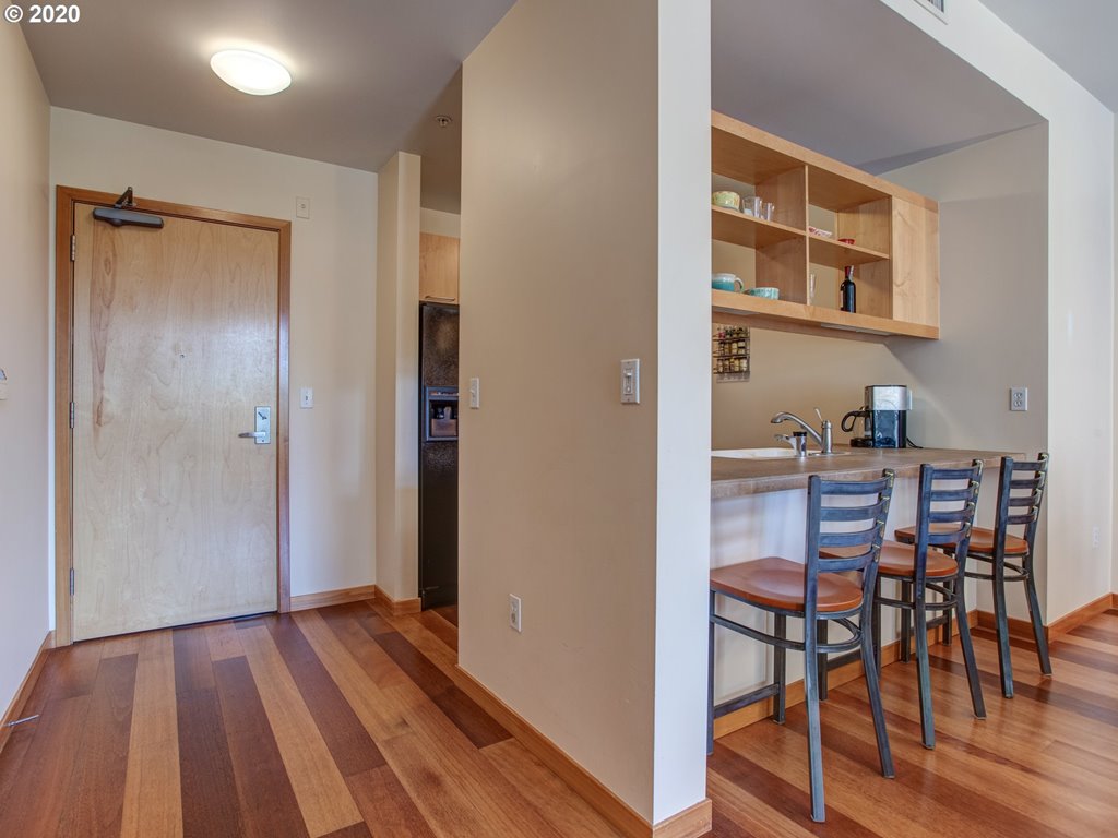 Pearl district Condo Tanner Place adjacent to Jamison Square on street car line. Two bedrooms & two baths located on the 4th level with southern exposure. Enjoy city views of downtown skyline from living room and large covered balcony facing beautiful courtyard. Features gas fireplace, Brazilian cherry floors through out, gas cook top. Includes separate storage unit located on 4th floor and secure parking.