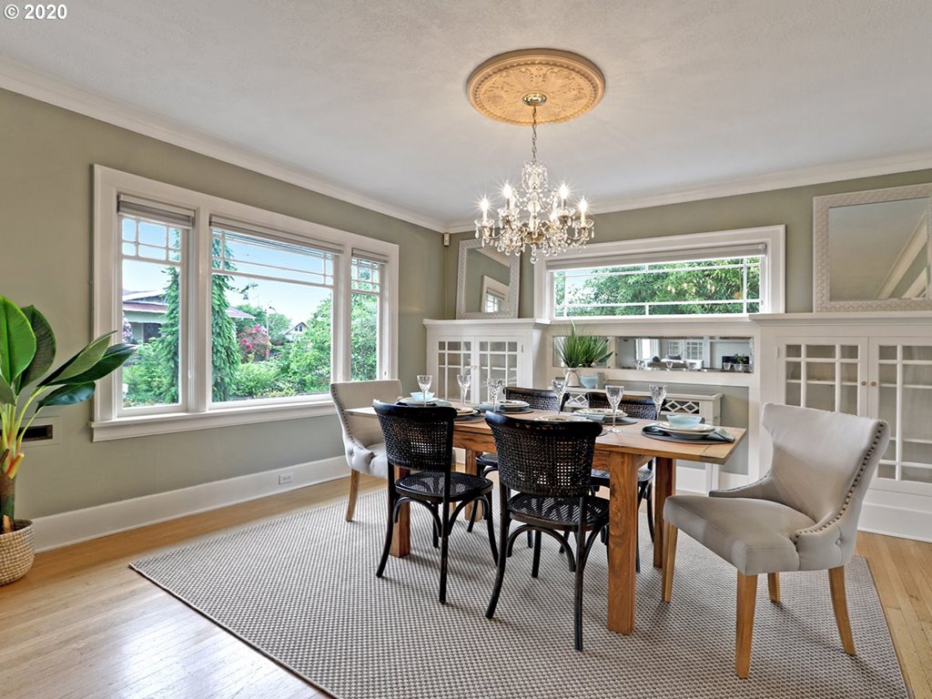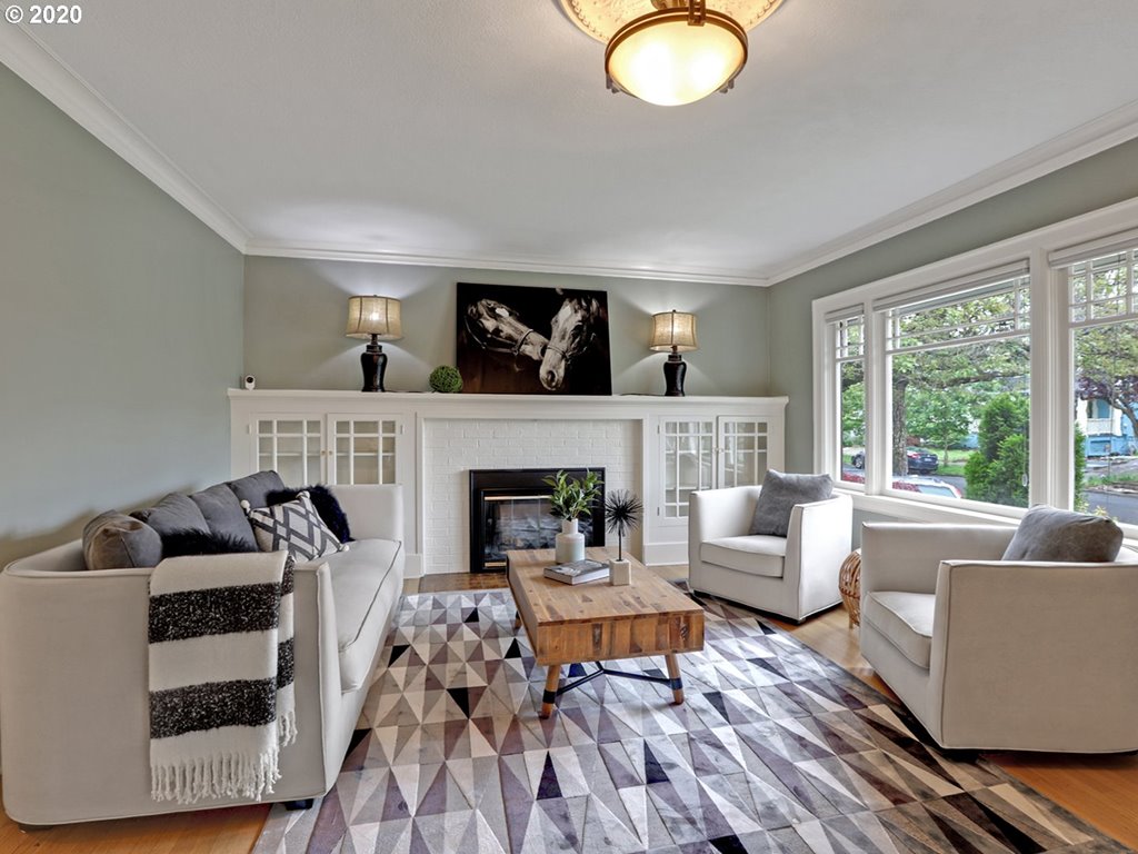 Alameda traditional in move in condition. Graceful living and dining room with hardwoods, built-ins and fireplace. Updated kitchen with French door to party sized deck. Two bedrooms and full bath on main, one bedroom up with half bath and a cool basement family room with fireplace, half bath & laundry. Lots of storage. Private back yard with tool shed. Surrounded by beautiful classic homes with beautiful landscaping. Three blocks to bus, great walking and biking to restaurants and shops.