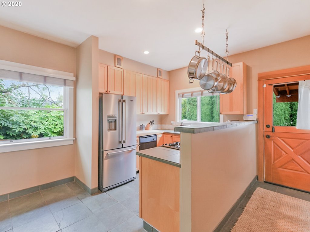 Overlook charmer on corner lot with newer roof and detached garage. Backyard with new fence and covered patio is great for pets and entertaining. Oak hardwoods, crown molding, claw foot tub and two sided fireplace between dining room-kitchen. Flexible floor plan allows for a non-conforming 3rd bedroom/den/study/nursery upstairs. Lots of potential in the large, unfinished, weatherized basement. Bikers Paradise Score = 97. Video Tour attached. [Home Energy Score = 4. HES Report at rpt.greenbuildingregistry.com/hes/OR10186829.pdf]