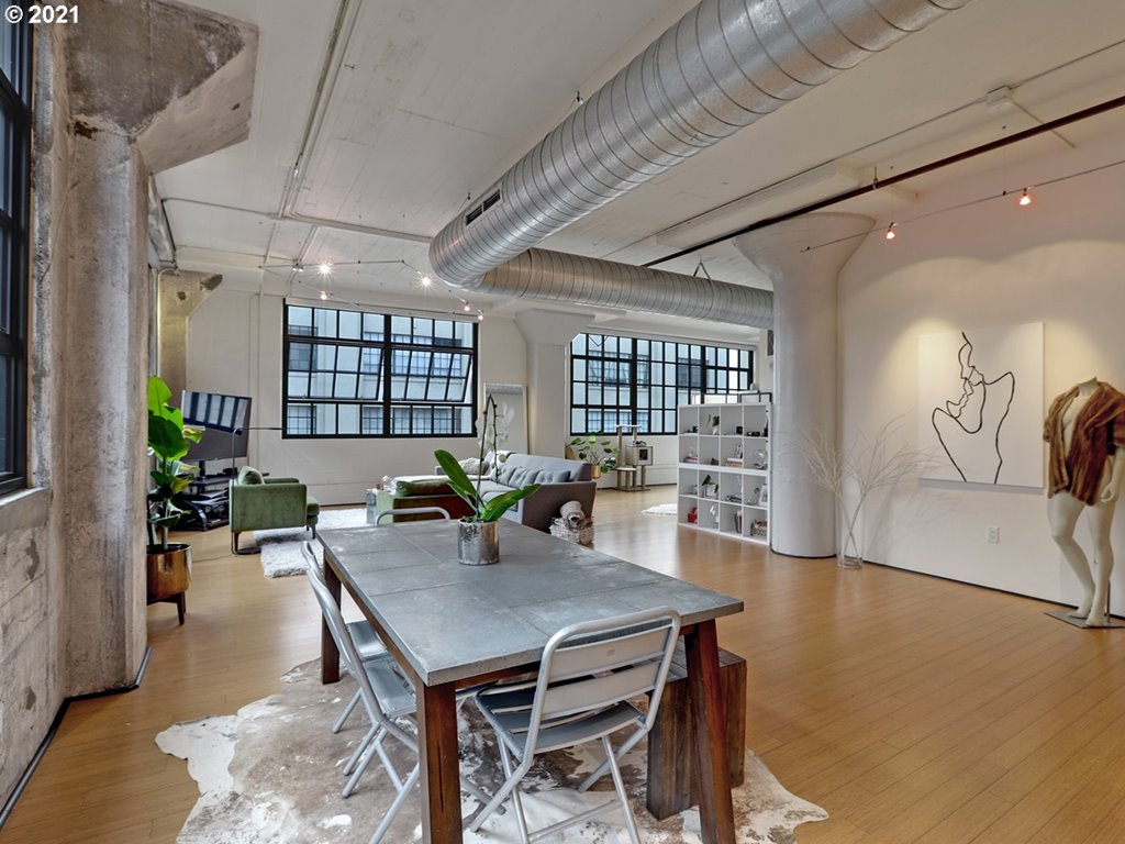Incredible northeast corner unit at The Avenue Lofts offers natural light, wide open spaces and a variety of layouts. This urban chic condo features high ceilings, wood floors, lots of natural light with custom electric roller shades, soundproof windows and a functional living space. Live and work in The Pearl with views of the Fremont Bridge and the charming neighborhood cityscape. Pedestrian courtyard, on-site gym, secure parking and a large storage unit. WalkScore 98 BikeScore 95.