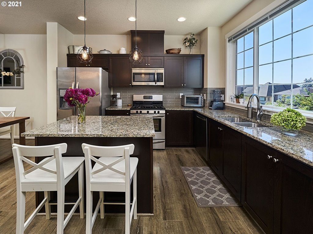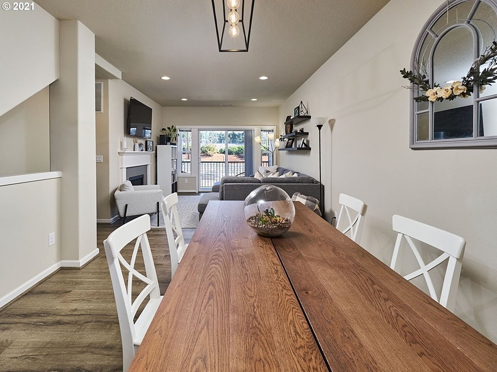 Beautiful English townhouse perfectly situated in River Terrace. Modern floor plan lives seamlessly and encompasses cozy living room that flows into dining room and kitchen. Kitchen is accented with solid slab granite counters surrounding stainless appliances and island with breakfast bar. Primary bedroom and kitchen are framed to lovely Oak Trees and walking paths. 2 car tandem garage and en-suite bathrooms complete this home. Community amenities include pool, gym, sport court and parks!