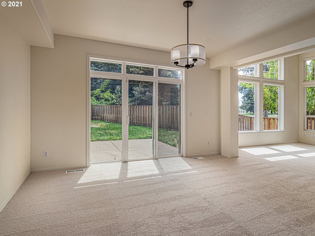 Enjoy this wonderful corner lot location in a quiet Tualatin neighborhood. Three bedrooms, 2.5 baths. High ceilings and a gas fireplace make the great room a comfortable place to relax. Open kitchen with island; all appliances included. New carpet, fresh paint and refreshed hardwood floors. Ready to move in! No HOA.
