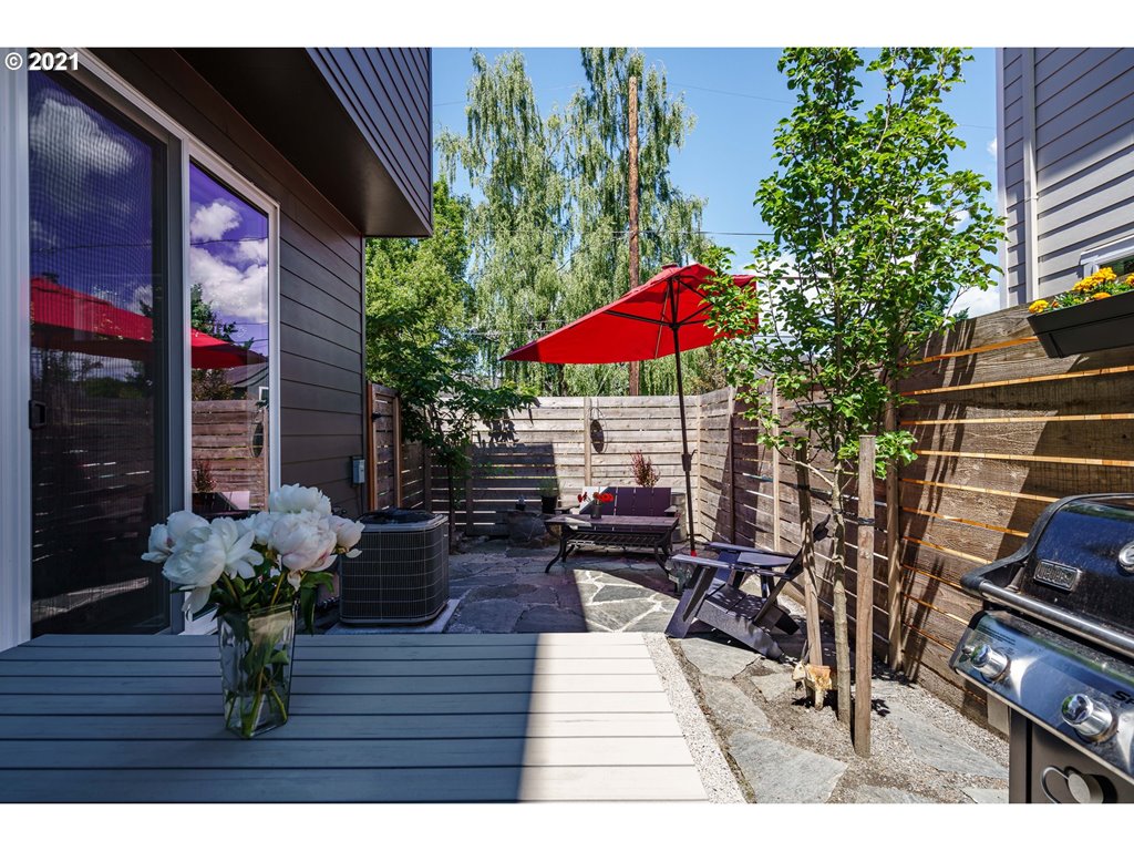 Welcoming end unit features many upgrades. This contemporary home boasts a great room style floor plan, living room with gas fireplace and built in cabinets. Fenced private backyard with quiet setting to relax and entertain! Located near restaurants, coffee shops, neighborhood park, and convenient access to main highways and downtown. [Home Energy Score = 8. HES Report at rpt.greenbuildingregistry.com/hes/OR10181604]