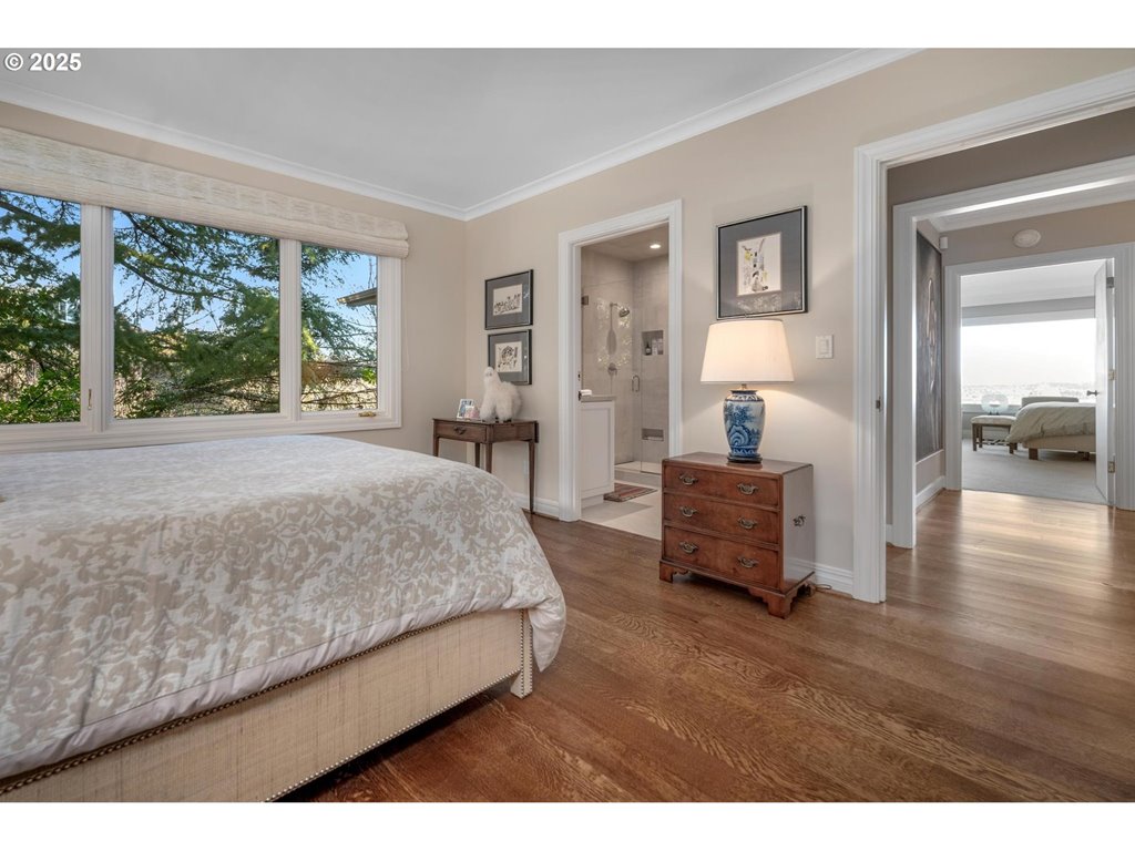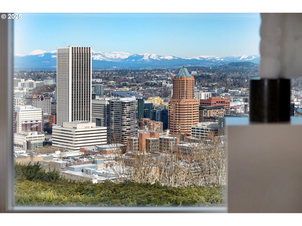 Perched above the city, this mid-century masterpiece has been meticulously remodeled with no detail overlooked. Nestled privately down a long driveway, the home welcomes you with breathtaking, panoramic views of the Portland skyline and surrounding mountains. A seamless blend of timeless design and modern luxury, the home offers a sophisticated and serene lifestyle.The oversized deck is perfect for taking in 180-degree views, while the tranquil Japanese-inspired gardens below, designed by Kurisu, provide a peaceful retreat. The expansive primary suite is a true sanctuary, featuring a walk-in closet and a spa-like bathroom with heated floors. With mostly main-floor living, the primary suite and secondary laundry space are conveniently located on the first floor. The lower level offers a beautiful secondary bedroom suite, a sauna, an impeccably designed wine cellar, a family room, workout space, and additional laundry facilities. Other highlights include a 4-car garage, generator, and sleek, sophisticated finishes throughout. This home is an unparalleled blend of luxury, comfort, and style in one of Portland’s most coveted neighborhoods. [Home Energy Score = 4. HES Report at rpt.greenbuildingregistry.com/hes/OR10235971]