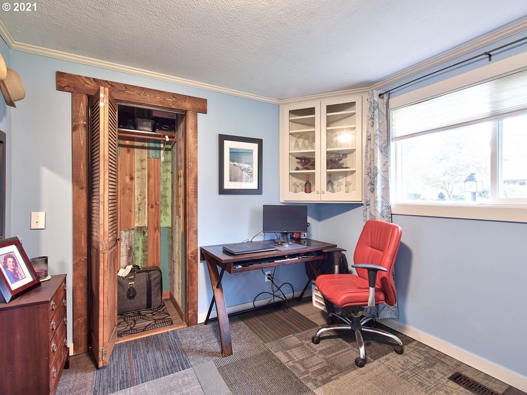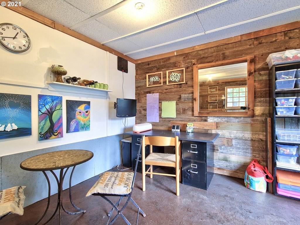 Tastefully updated, private setting one level home with RV parking, openness with lots of windows and light. Features barn wood accents, quartz counters, hardwood floors, cozy and decorative wood burning fireplace with concrete hearth and wood-stained mantel with finished carpentry, fully fenced yard, outdoor living with covered and uncovered decks, fire pit area, interior finished 15 x 13 shed with wall air conditioning and rustic, barn wood decorative wall accents, garden areas. Just move in!