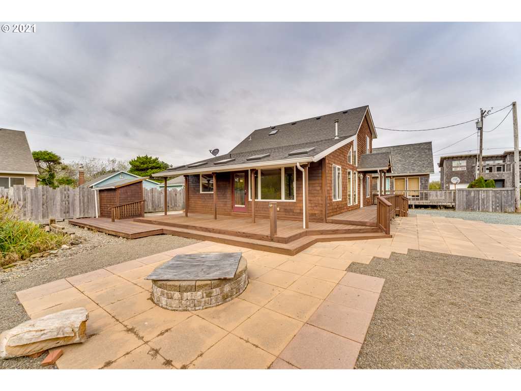 Fantastic beach cottage with room for everyone! Minutes walk to the beach and all of the downtown fun. 2 lots included in this sale. Great room concept with living/kitchen/dining rooms. Stainless/newer appliances & TV’s included. Primary bdrm upstairs with full bath, deck & additional living room or family room. Wrap around deck w/covered portion looking onto nice firepit/sitting area. 4th bedrm/bonus rm w/exterior door. Territorial view of coastal mountain range. A great find!