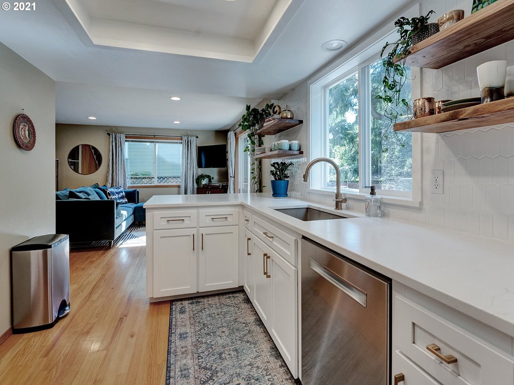 Multnomah Village Oasis. Nestled just a few blocks from Multnomah Village & Gabriel Park, this property checks all the boxes with a fresh new custom kitchen, delightful outdoor entertaining space, and tasteful interior layout. Vaulted ceiling, hardwood floors and fireplace give the main living room and dining room intrigue and depth. The family room is open to the stunning kitchen and leads directly onto the back deck, where you will be surrounded by lush landscaping and tranquil bliss. [Home Energy Score = 5. HES Report at rpt.greenbuildingregistry.com/hes/OR10191643]
