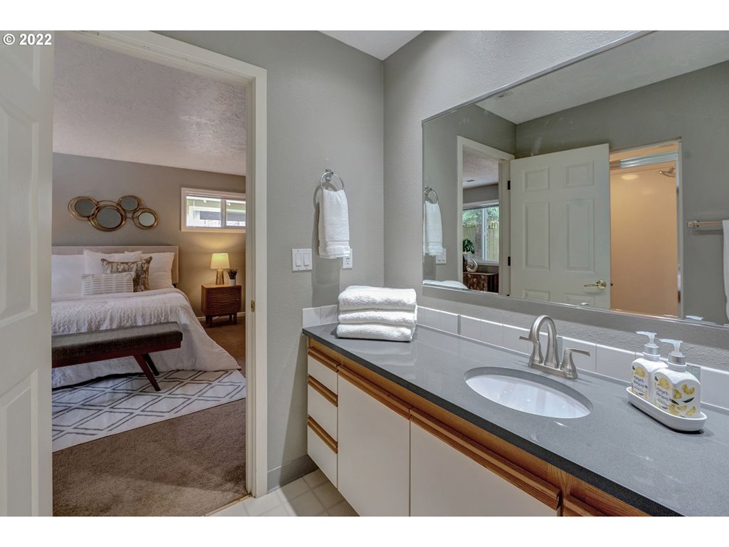 Nicely updated home with an oversized 3 car garage in SW Portland, close to downtown, 2 blocks to coffee and shopping. Master and 2 beds on one level. The fenced backyard area is flat and low maintenance. A/C was installed in 2018, roof in 2019. New quartz counters in the kitchen and baths, new carpet downstairs. The lower level has high ceilings and could be a media room, family room, playroom, craft space or guest area. 220 outlets in the garage and on deck. Pre-inspected and ready to go! [Home Energy Score = 6. HES Report at rpt.greenbuildingregistry.com/hes/OR10203396]