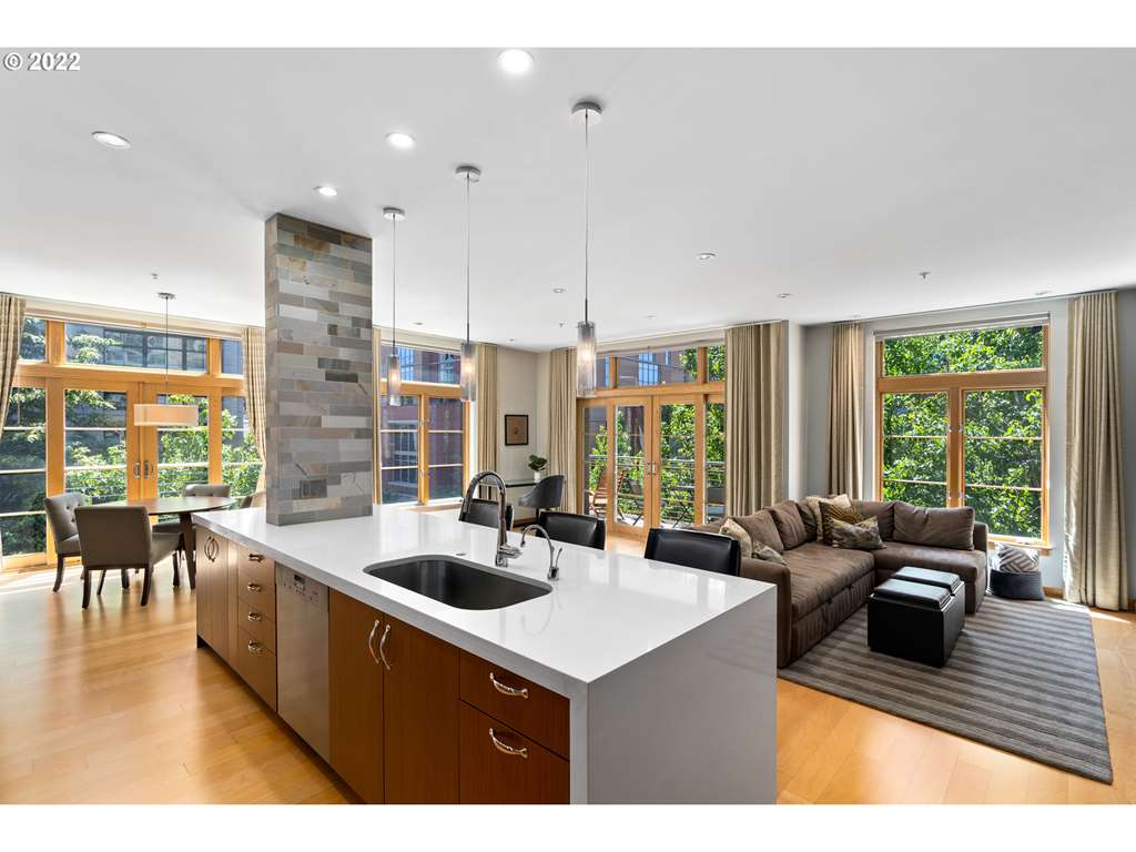 Enjoy the spacious, open floor plan of this corner condo which includes a combination living/dining room that opens up to the patio with skyline views of the city and west hills. Sellers spared no expense in the kitchen + bathroom remodel with upgraded cabinetry, quartz countertops, and appliances. Recess lighting and plenty of closet space perfect the convenience and liveability of this home. Superbly run HOA covers water, gas, sewer/ trash. 2 parks within 1 block , enjoy all that Pearl has