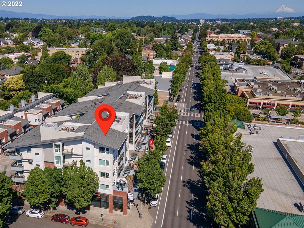 Beautiful views from the spacious top floor corner unit with vaulted ceilings, and lots of light. Convenient location to downtown, bus, and max. Custom living room built-in’s, deck off the living room and bedroom. Large master bedroom and bathroom with excellent storage and nicely updated. Large utility/laundry room. Two secure parking spots. Secure and safe building with great tenants and common areas. This is the place to live the dream!