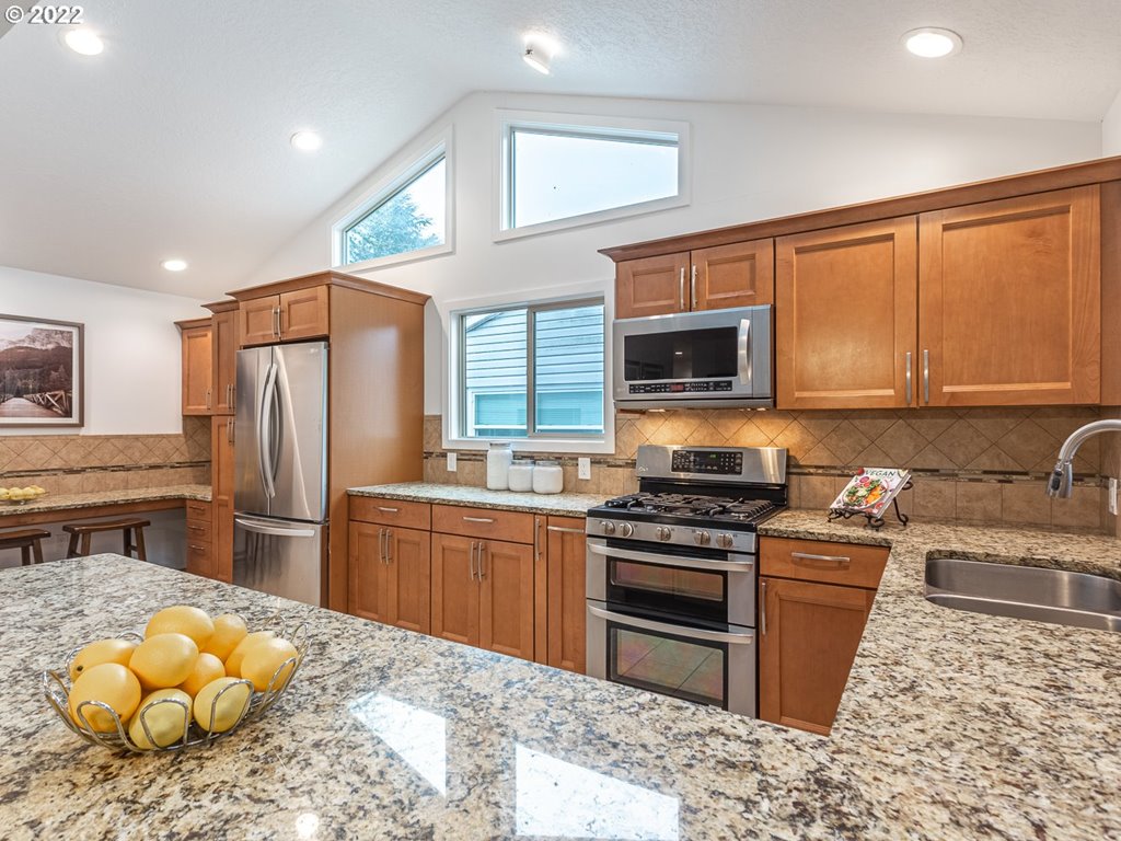 WOODROW WILSON PARK! Glorious light streams into this elegantly remodeled mid-century classic! New paint, in and out! Spacious gourmet kitchen; renovated baths and new light fixtures! Long dining/living room makes for flexible entertaining. Main level primary boasts a full bath and WI closet. Lower bed has walk-in closet with adjacent bath. Home is a playtime dream with a generous lower FR for indoor play and a massive level back yard for outdoor. Downtown, OHSU, Hillsdale, Multnomah Village!