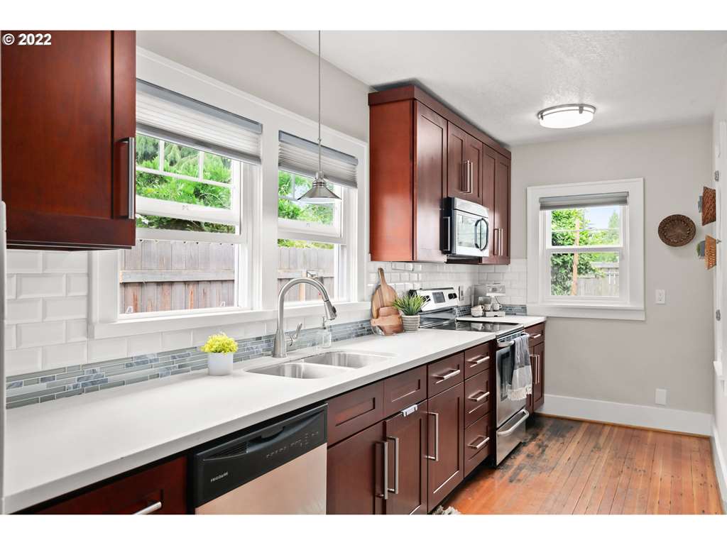 Adorable bungalow centrally located to shopping, Alberta & the Mississippi district. Colorful landscaping creates privacy & leads you to a cozy front porch. This updated home features hardwood floors & modern farmhouse kitchen with ample cabinet space, SS appliances & quartz countertops! Bedrooms have bright windows while finished attic can be used as a third bedroom or entertainment room. Basement features extra storage space the backyard is fenced & landscaped. Close to transit & bike routes!