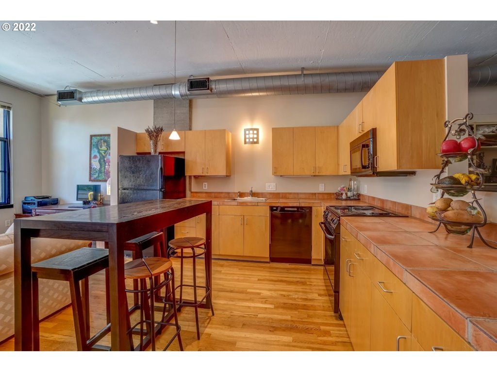 East facing loft conveniently close to everything the Pearl has to offer! Enjoy the sunrise on the large covered balcony. Large windows W/much light. Real HW floors, high ceilings, kitchen W/plenty of cabinet space. Large bathroom W/spacious utility closet includes W&D. Secure deeded parking, separate storage room & community bicycle storage room. Blocks to Whole Foods, Armory Theater, Powells, Streetcar and vibrant cafes & shops in all directions. You are buying a lifestyle, not just a home.