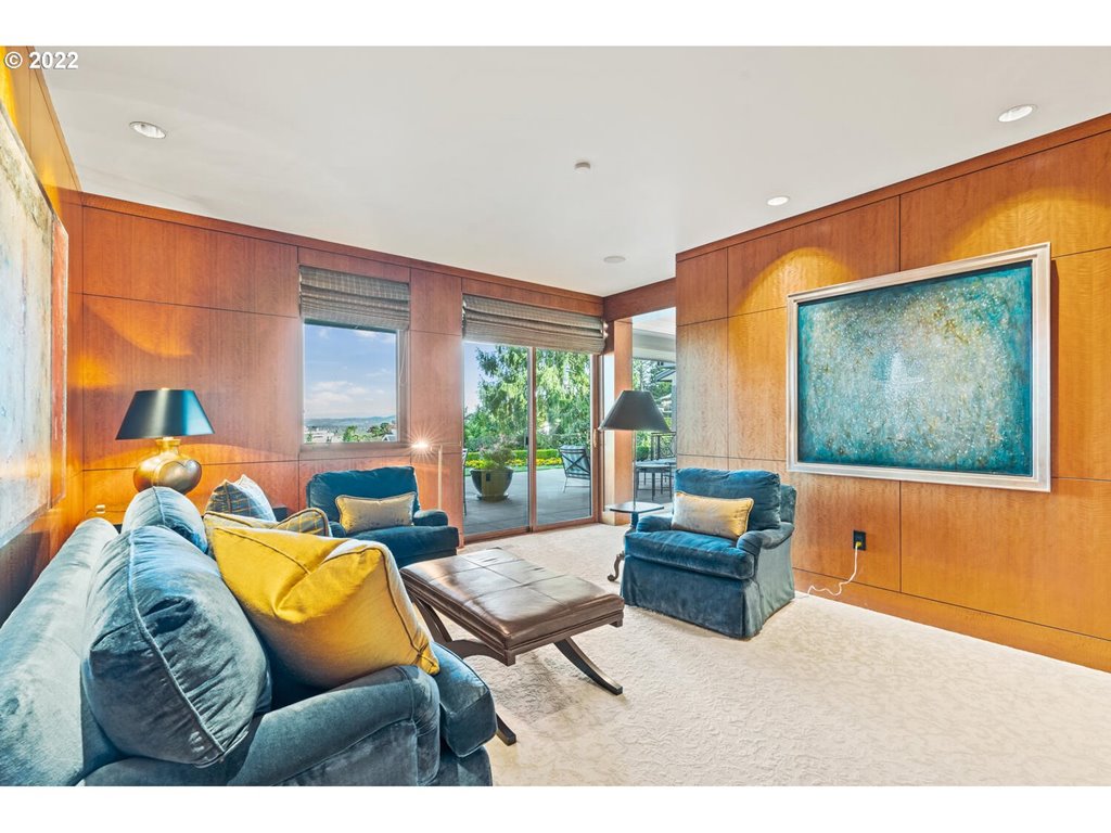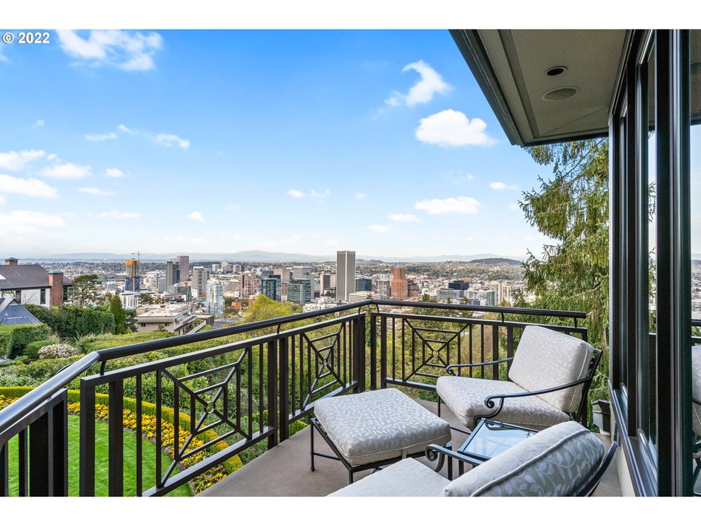 Unparalleled elegance & breathtaking Mt Hood, Adams, St Helens & city views abound in the Portland Heights’ best kept secret!Stunning craftsmanship thruout: Crema Marfil marble slab, luxe Anigre millwork, 2 primary suites w/sumptuous sitting & dressing rooms/offices & stellar spa bathrooms.Flow from the chic sun patio w/waterfall pool thru walls of glass doors to covered view verandah with grill.2 showroom garages, wine cellar, custom media room.Your private executive enclave awaits!