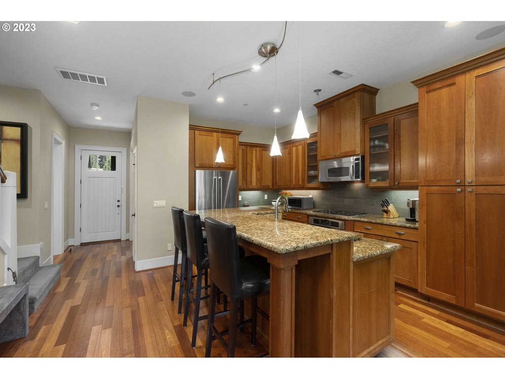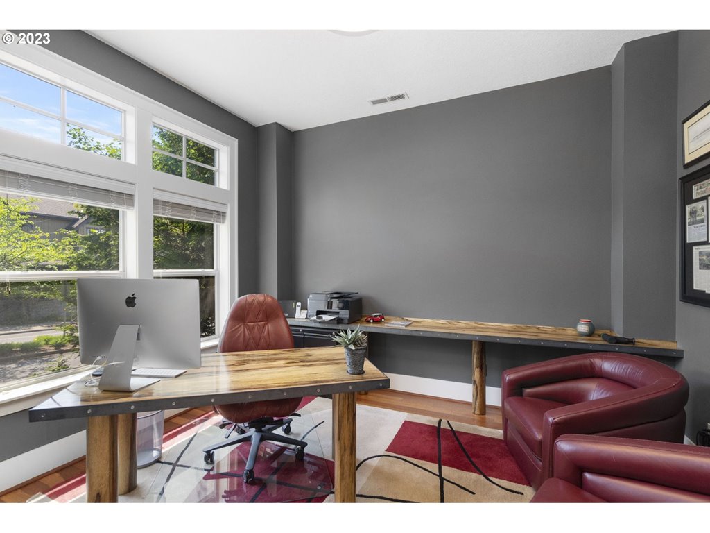Premium townhome situated in the coveted Peterkort Woods community of Southwest Portland. This luxurious townhouse with dual suites was designed by respected builder, Renaissance Homes, and blends contemporary comfort, style, and convenience. Discover rich-toned hardwood flooring spanning the entire main level along with 10-foot ceilings. The great room and kitchen are seamlessly connected with the kitchen showcasing stainless steel appliances and ample counter space making it perfect for entertaining. Savor your morning coffee or unwind after a busy day on the covered deck which offers peaceful views of Merritt Park. The dual-bedroom suites offer a sophisticated sanctuary, complete with spacious walk-in showers adorned with custom tile work and built-in closet organizers. The dining room is presently serving as a well-appointed office space while also offering the potential to be transformed into a third bedroom, complete with French doors. A home theater, office, or fitness area are just a few uses for the lower-level flex space. Secure parking is available in the spacious 2-car garage. This residence has been graced with an array of enhancements between 2019-2020, including a new Daikin gas furnace and heat pump with a 12-year warranty (2022) and an HVAC air purifier installed in 2020. The appliances were also updated in 2020 including the washer/dryer with a 10-year warranty, dishwasher, and refrigerator. To create a peaceful living space, the premium construction includes a 2×6 frame double-wall structure with Owens Corning acoustic insulation. Discover the charm of this community with a clubhouse, swimming pool, beautiful nature walks, and park spaces, all reminiscent of a resort. NIKE, Intel, Providence Hospital, LifeTime athletic club, MAX Light Rail, and shopping destinations are all within proximity. Washington County Taxes!