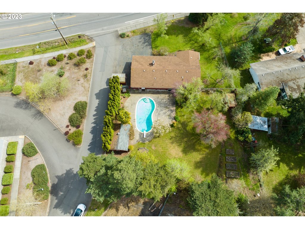 Darling 60’s one level ranch on a half acre parcel. Living is easy in this nicely maintained home has original hardwood flooring in the main living area and all the bedrooms. Natural lights thru-out the living space, spacious kitchen/dining area leads right into lovely backyard for entertaining and to enjoy the summer fun. This home has a all, in-ground swimming pool, large storage shed, green house, garden, lots of storage, and oversized two car garage. Want to create workspace at home? Zoned industrial, there are many options to explore for in-home office or commercial space. Perfect opportunity for investors! [Home Energy Score = 3. HES Report at rpt.greenbuildingregistry.com/hes/OR10213141]