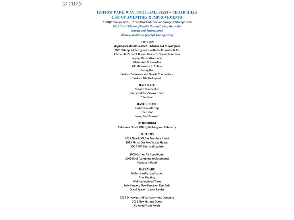 STUNNING remodel throughout. This one level Cedar Hills home was exquisitely remodeled in 2013, with a new high end kitchen, family room and bathrooms. See Improvement List for the many updates. Step out of the family room onto the large Trex deck, overlooking the professionally landscaped, fully fenced backyard. An oversized two car garage is attached. Close to Hwy 26 & 217, Nike, Intel, shopping, & restaurants, and Commonwealth Lake & Park.