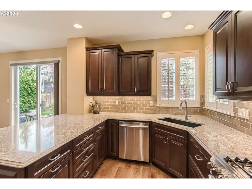 Back on the market at no fault of home. Beautiful updated craftsman located in desirable golf course neighborhood “The Greens”. Open main level floor plan. Kitchen features soft shut kitchen cabinets & pantry, quartz countertops with designer Sonoma Tilemaker backsplash and large eating bar. Durable luxury vinyl plank flooring in most of main level. living area is open to kitchen & dining and features gas fireplace with tile surround and mantel built-in cabinets on either side. Sliding door opens to fenced landscaped backyard, patio & raised garden beds. The upstairs primary bedroom is spacious with walk in closet, bathroom features large soak tub, walk-in shower & double sinks. Upstairs bathrooms have upgraded cabinets with quartz counter tops. The large 4th upstairs room can be used as a bedroom or bonus room. The garage offers overhead storage and side access to the backyard. Fenced, landscaped backyard with rock patio and raised garden beds.