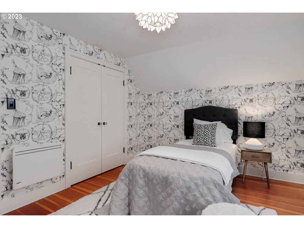 Ultra charming English cottage on a quiet dead end cul-de-sac! Wood floors, crown molding, wood FP. Beautifully updated kitchen w/quartz counters, French doors, pantry, SS appliances, gas range & BI wine fridge. Bedrm & full bath on main + 2 spacious bedrms up featuring wood floors & lrg closets. Full basement w/wash/dry included. Lower also offers great flex space for both a Familym & Home Office. Private fenced yard: Gardener’s dream w/irrigation system. New HVAC & electric panel 2022. A Gem! [Home Energy Score = 6. HES Report at rpt.greenbuildingregistry.com/hes/OR10186715]