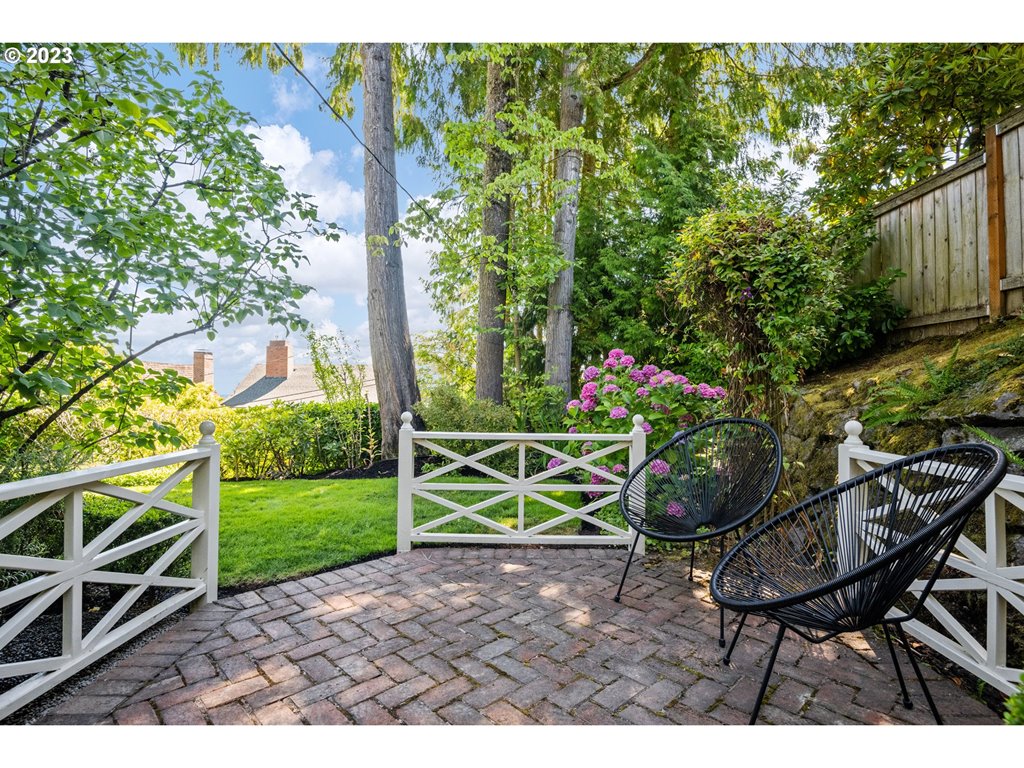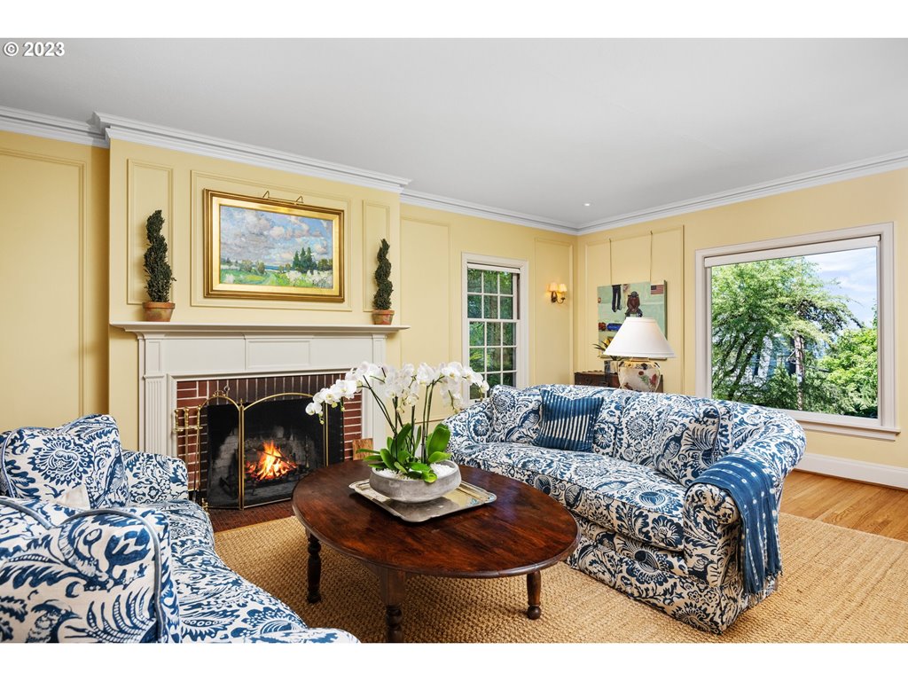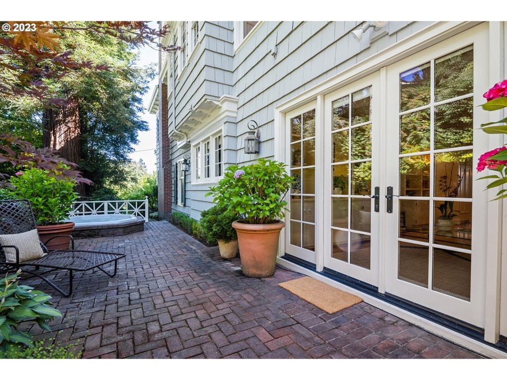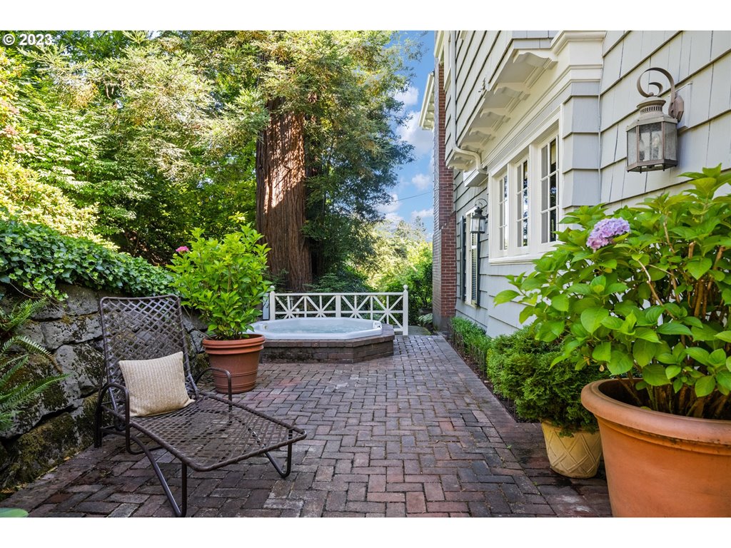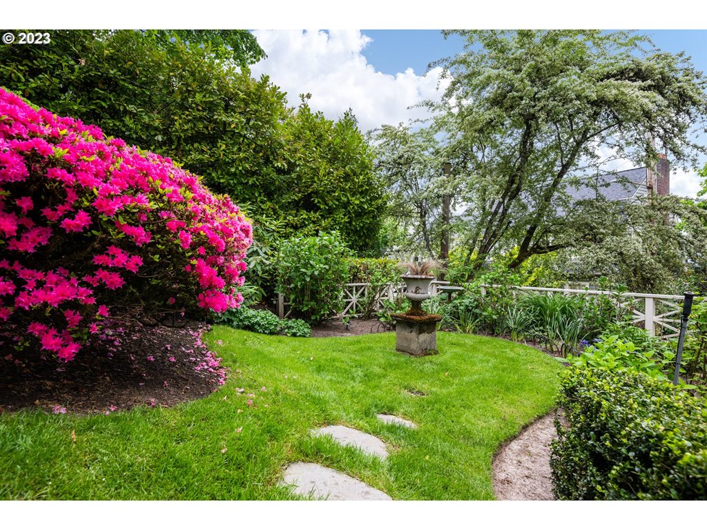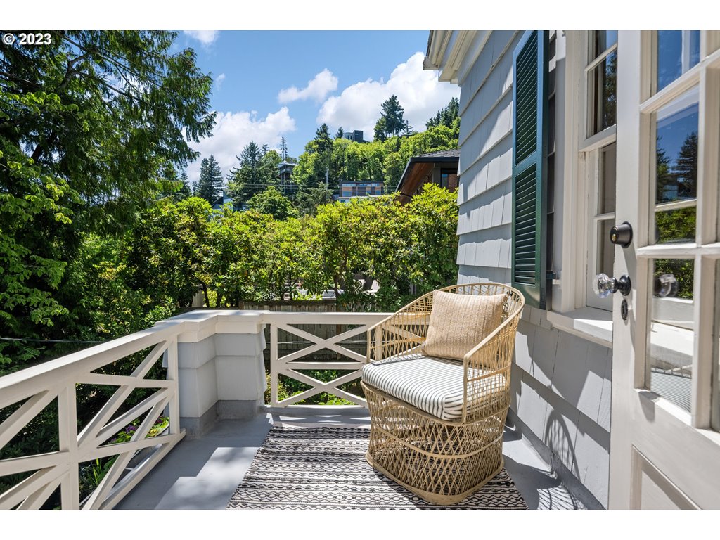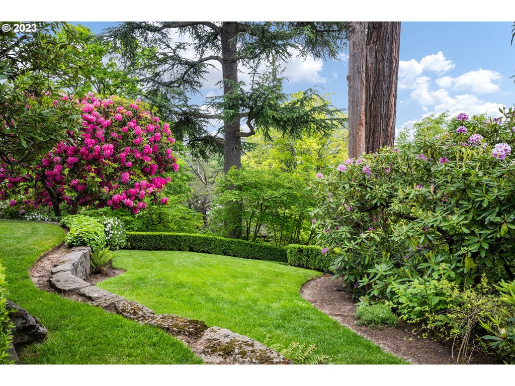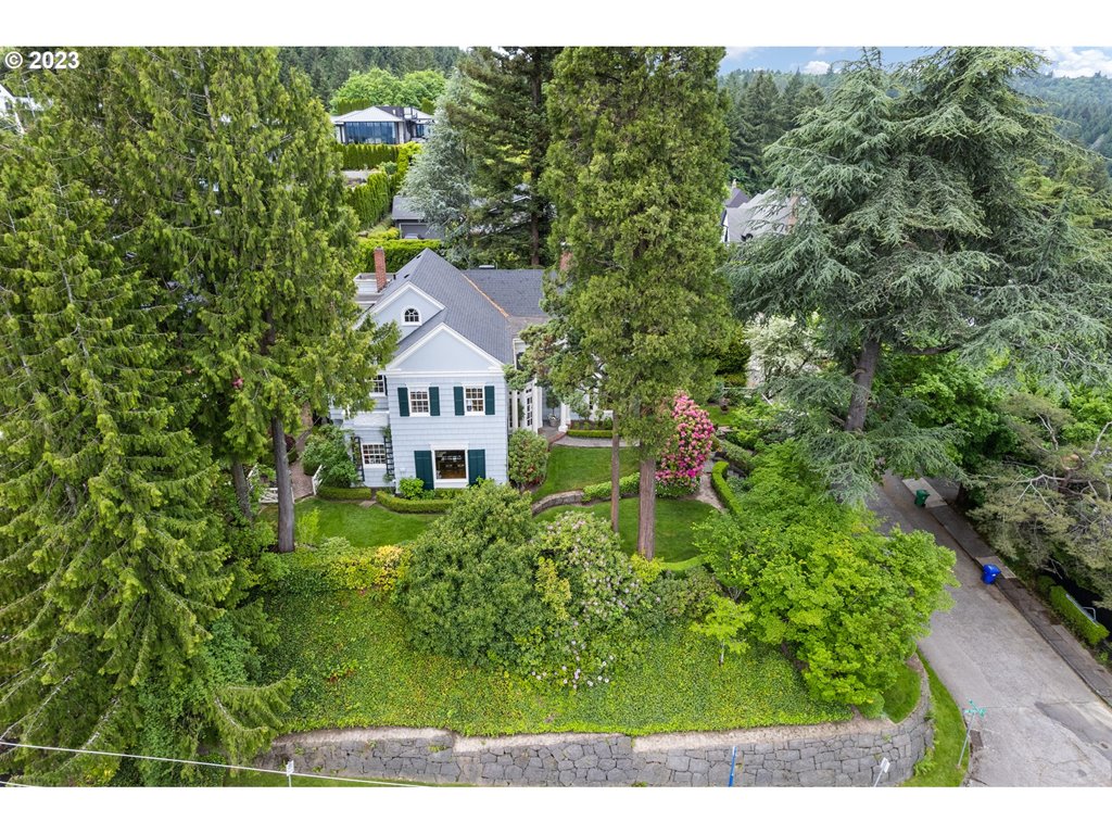 This home has an impressive architectural pedigree: originally designed by commercial Architects DeYoung and Roald (Historic Heathman Hotel) for prominent Civic Engineer G.L. Rauch. Later prestigious Architect Richard Sundeleaf did kitchen & family room expansion with Douglas fir hand-hewn timbers. The home has been masterfully updated with timeless finishes and is surrounded by incredible gardens. Incredible public rooms are adorned with multi-pane and French doors. Paneled walls meet picture rail millwork and original built-ins and architectural details are highlighted by natural light streaming in the windows. The home has been enhanced to ensure the original architectural charm was retained. The kitchen, with slab Cararra marble counters, is connected to the family room which opens to an brick patio. Luxurious primary en suite bathroomis finished with captivating Honey Onyx. Windows frame outlooks of Mt Hood, Mt Adams, Willamette River the City, plus mutiple gardens and patios. Master stone & tile mason from England created pathways complementing the existing stone walls- which were built by the same stone mason as the Vista House in the Columbia River Gorge. Lush lawns are bordered by blooming shrubs and majestic trees. The home is elevated above the street ensuring privacy, serenity and an abundance of natural light. Rare original two car garage attached with tunnel and convenient staircase to the basement and kitchen. Located one street away from Forest Park trails at the end of NW Cumberland. [Home Energy Score = 1. HES Report at rpt.greenbuildingregistry.com/hes/OR10219465]