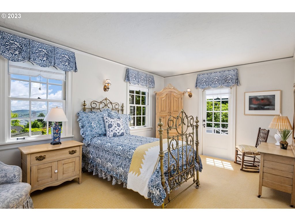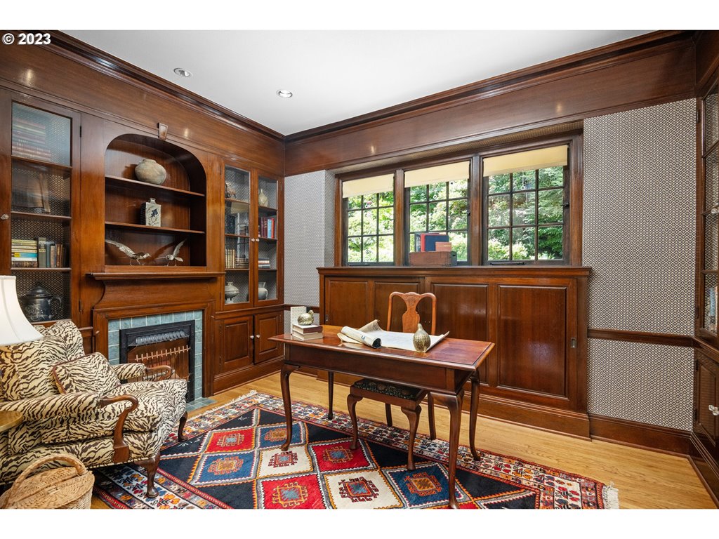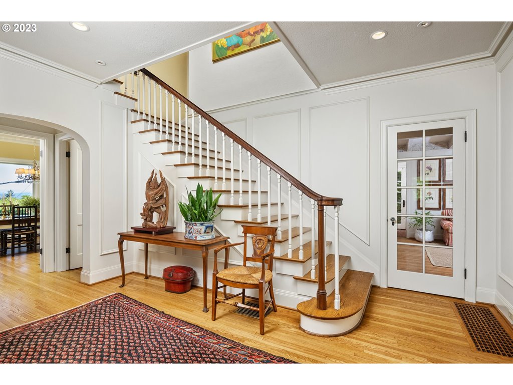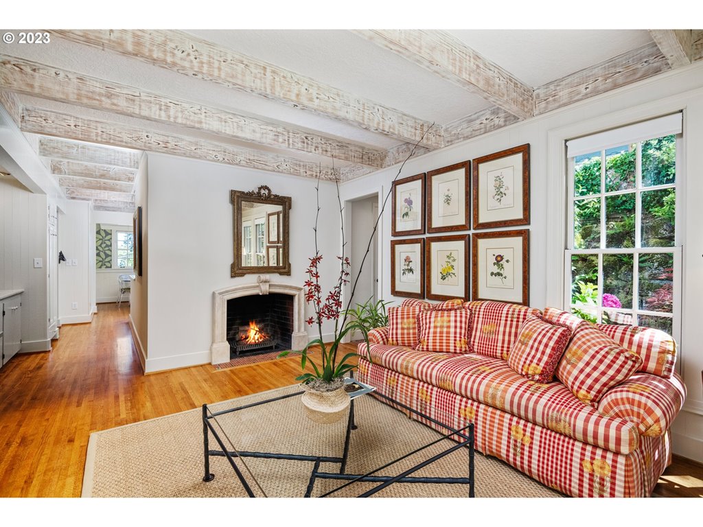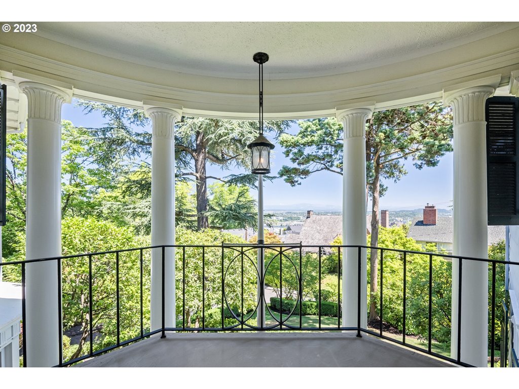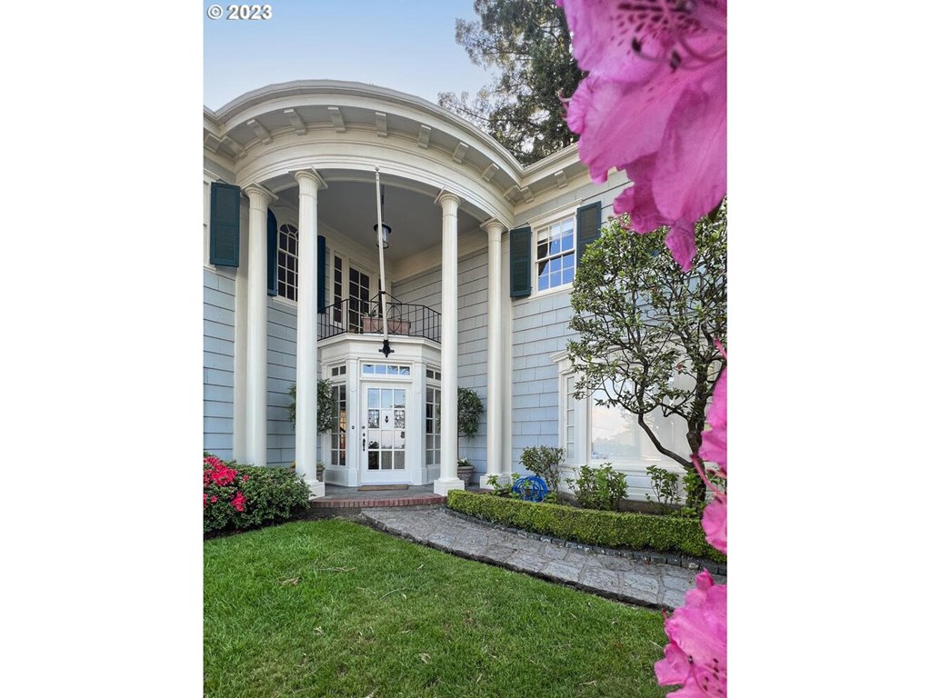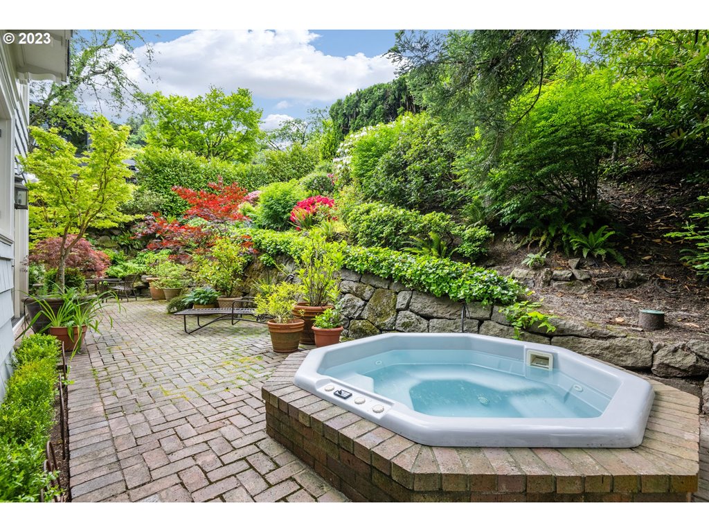 This home has an impressive architectural pedigree: originally designed by commercial Architects DeYoung and Roald (Historic Heathman Hotel) for prominent Civic Engineer G.L. Rauch. Later prestigious Architect Richard Sundeleaf did kitchen & family room expansion with Douglas fir hand-hewn timbers. The home has been masterfully updated with timeless finishes and is surrounded by incredible gardens. Incredible public rooms are adorned with multi-pane and French doors. Paneled walls meet picture rail millwork and original built-ins and architectural details are highlighted by natural light streaming in the windows. The home has been enhanced to ensure the original architectural charm was retained. The kitchen, with slab Cararra marble counters, is connected to the family room which opens to an brick patio. Luxurious primary en suite bathroomis finished with captivating Honey Onyx. Windows frame outlooks of Mt Hood, Mt Adams, Willamette River the City, plus mutiple gardens and patios. Master stone & tile mason from England created pathways complementing the existing stone walls- which were built by the same stone mason as the Vista House in the Columbia River Gorge. Lush lawns are bordered by blooming shrubs and majestic trees. The home is elevated above the street ensuring privacy, serenity and an abundance of natural light. Rare original two car garage attached with tunnel and convenient staircase to the basement and kitchen. Located one street away from Forest Park trails at the end of NW Cumberland. [Home Energy Score = 1. HES Report at rpt.greenbuildingregistry.com/hes/OR10219465]