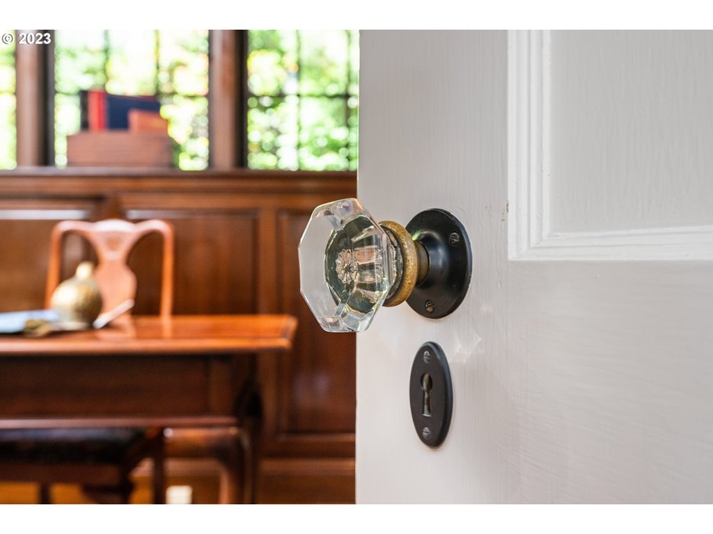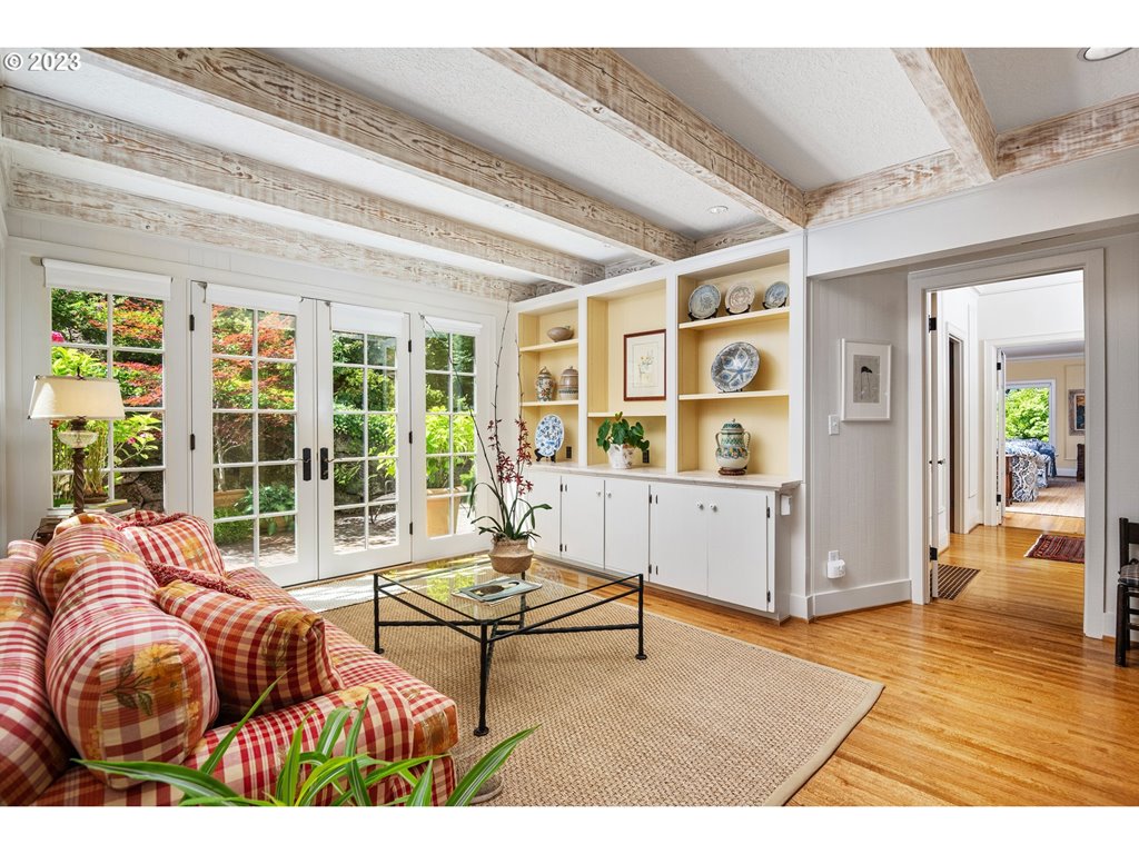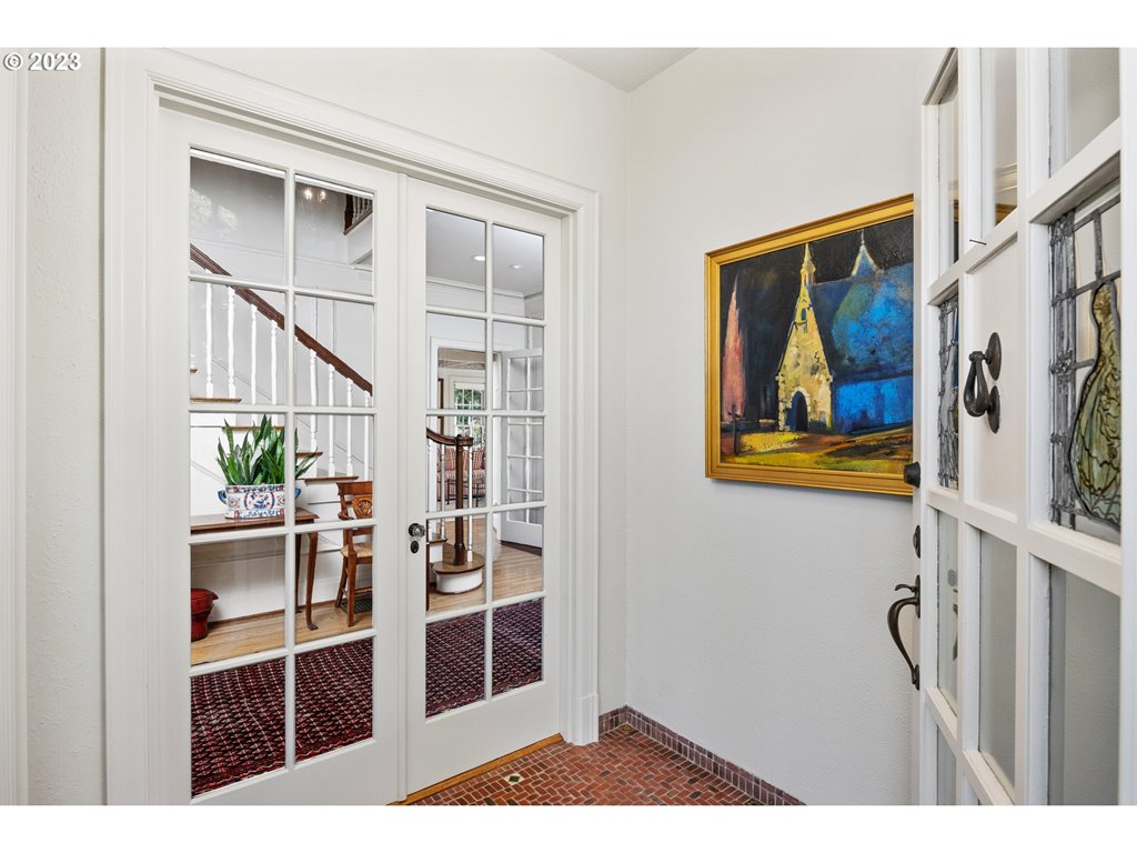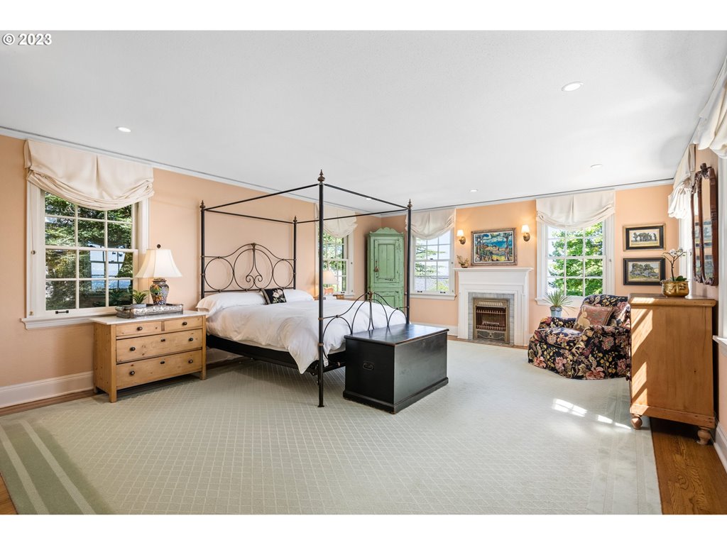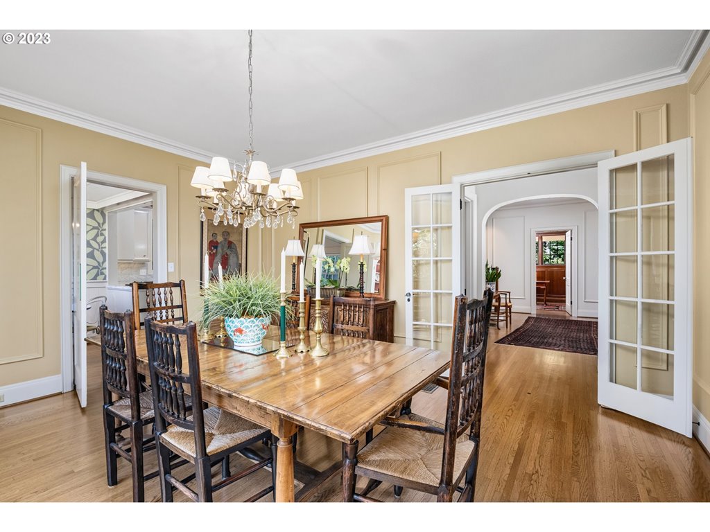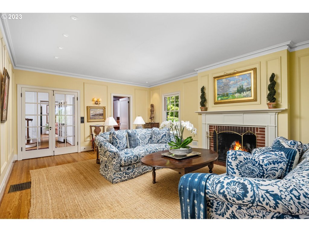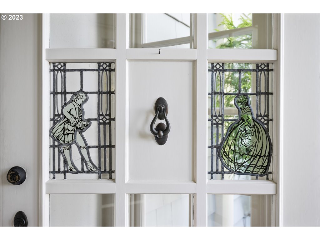 This home has an impressive architectural pedigree: originally designed by commercial Architects DeYoung and Roald (Historic Heathman Hotel) for prominent Civic Engineer G.L. Rauch. Later prestigious Architect Richard Sundeleaf did kitchen & family room expansion with Douglas fir hand-hewn timbers. The home has been masterfully updated with timeless finishes and is surrounded by incredible gardens. Incredible public rooms are adorned with multi-pane and French doors. Paneled walls meet picture rail millwork and original built-ins and architectural details are highlighted by natural light streaming in the windows. The home has been enhanced to ensure the original architectural charm was retained. The kitchen, with slab Cararra marble counters, is connected to the family room which opens to an brick patio. Luxurious primary en suite bathroomis finished with captivating Honey Onyx. Windows frame outlooks of Mt Hood, Mt Adams, Willamette River the City, plus mutiple gardens and patios. Master stone & tile mason from England created pathways complementing the existing stone walls- which were built by the same stone mason as the Vista House in the Columbia River Gorge. Lush lawns are bordered by blooming shrubs and majestic trees. The home is elevated above the street ensuring privacy, serenity and an abundance of natural light. Rare original two car garage attached with tunnel and convenient staircase to the basement and kitchen. Located one street away from Forest Park trails at the end of NW Cumberland. [Home Energy Score = 1. HES Report at rpt.greenbuildingregistry.com/hes/OR10219465]