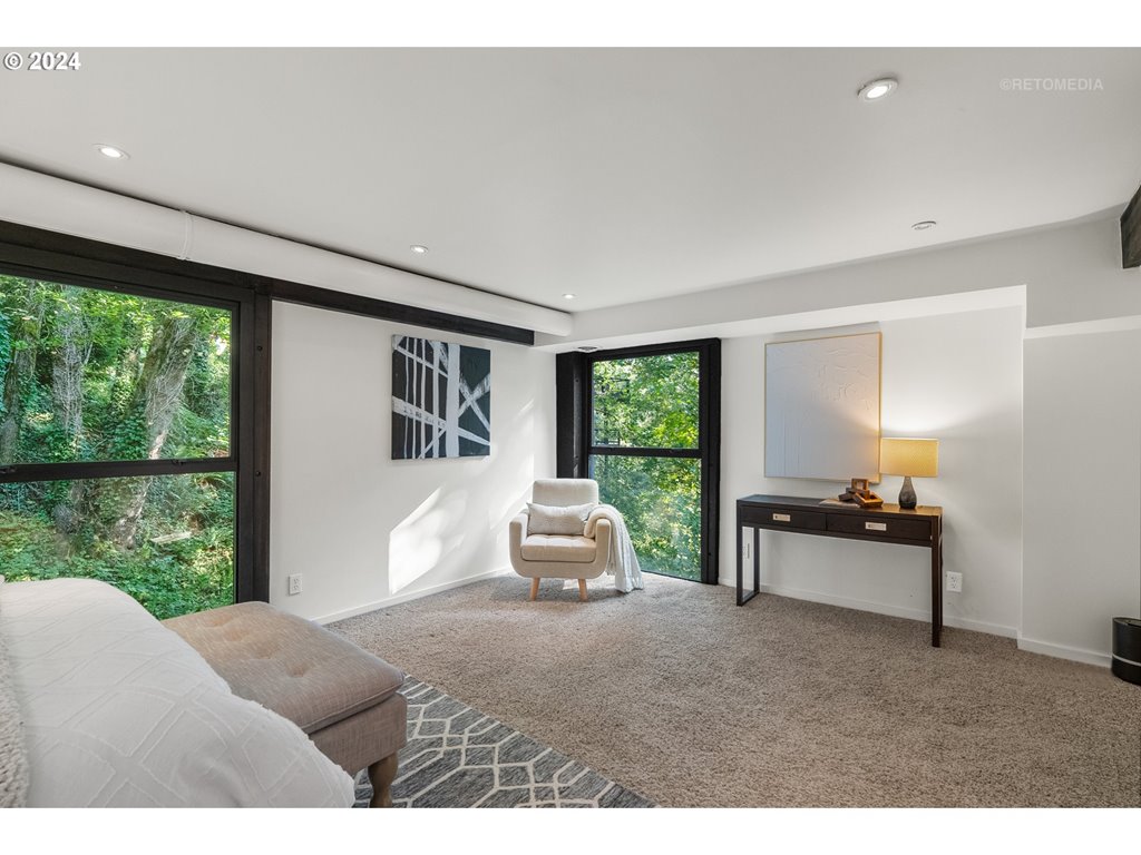 This stunning custom contemporary home, designed by architect James Oliver, masterfully integrates indoor and outdoor living with floor-to-ceiling windows that capture the surrounding natural beauty. Oliver’s forward-thinking design effortlessly merges modern comfort with nature. The sleek eat-in kitchen, featuring concrete countertops and Viking appliances, is a chef’s dream. The expansive master suite provides a private retreat, complete with a luxurious en-suite bath.Perfect for outdoor entertaining, the home boasts a serene deck overlooking lush greenspace and a front yard equipped with a built-in grill and cozy gas fire pit. Situated in a prime location just minutes from downtown and the Hillsdale shopping district, the property offers both convenience and tranquility.At the end of the street lies the trailhead to Keller Woodlands, a gateway to a series of natural areas stretching across Portland’s West Hills. This protected wildlife corridor, connected to Marquam Nature Park and extending to Forest Park, offers endless hiking opportunities and stunning forested vistas, providing an unparalleled connection to the outdoors right at your doorstep.