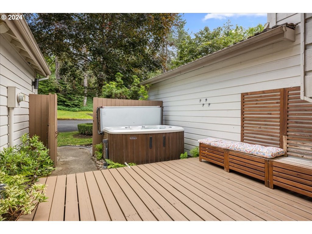 Beautifully updated West Hills townhome with the benefit of low Washington County taxes. Highly desired Windemere neighborhood, where serene living meets urban convenience.The spacious living room features a wood-burning fireplace and extends to an outdoor porch, overlooking lush greenspace and a tranquil creek. Upstairs you’ll find two generously sized bedrooms which include a master suite with a huge walk-in closet and a cozy fireplace. The second bedroom, perfect as an office or guest room, also boasts a walk-in closet. The 2 car garage and driveway offer personal and guest parking, as well as ample storage. This home is nestled in a park-like setting and provides the perfect retreat while being just minutes from downtown Portland, major highways (217 and 26), Nike, Intel, and St. Vincent Hospital. Enjoy easy access to shopping, dining, and parks, all within a stone’s throw. Whether savoring your morning coffee on the peaceful deck overlooking the babbling brook or enjoying the proximity to urban amenities, this townhome is the ideal blend of style, comfort, and convenience, offering a unique opportunity to experience the best of West Hills living.