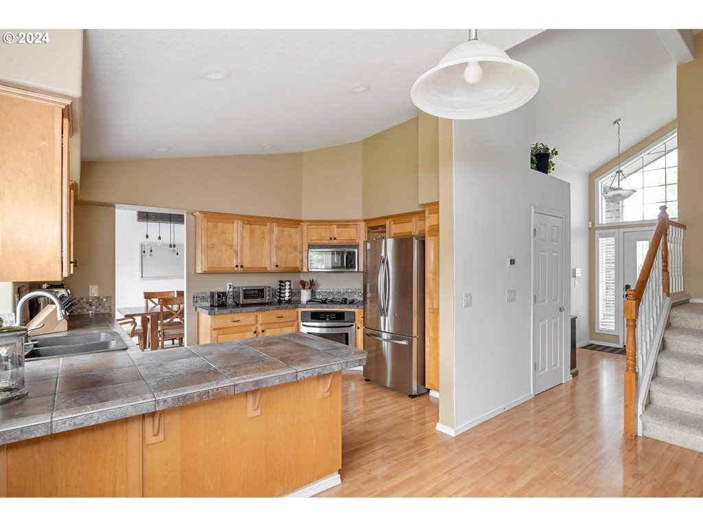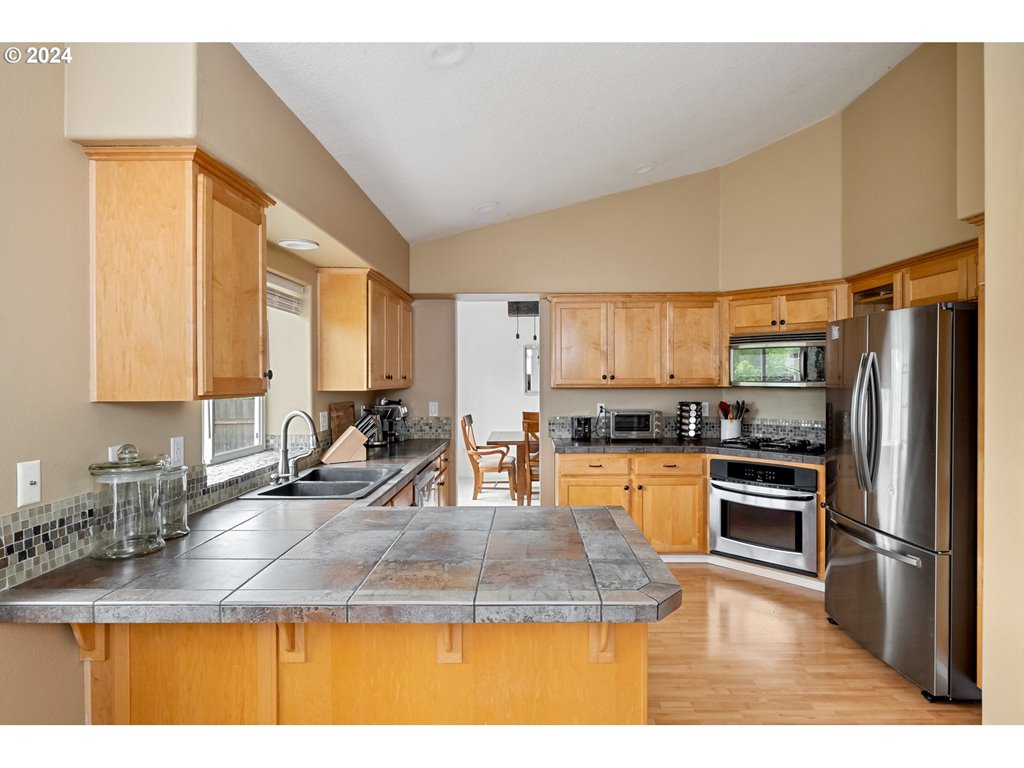 Light and bright tri-level home on .23 acres in Oregon City. The spacious floor plan showcases vaulted ceilings, a generous kitchen with stainless-steel appliances, a gas fireplace, and an upstairs laundry room. Other features include a newer roof, an oversized 3-car garage, RV/boat parking, a large fenced backyard, and covered patio. Great schools and convenient location complete this rare find.